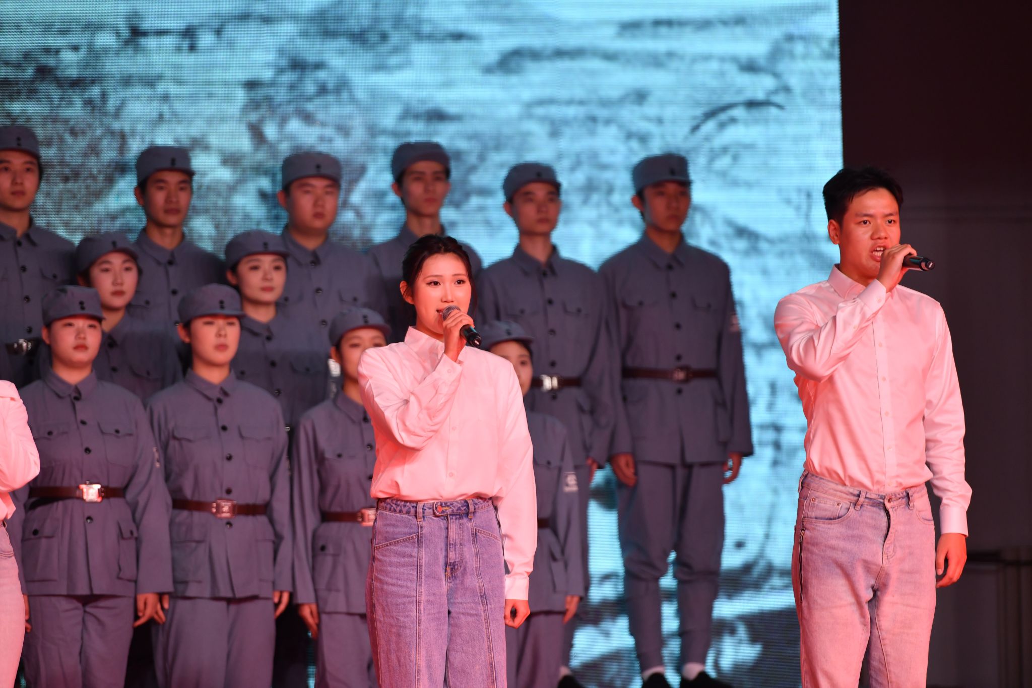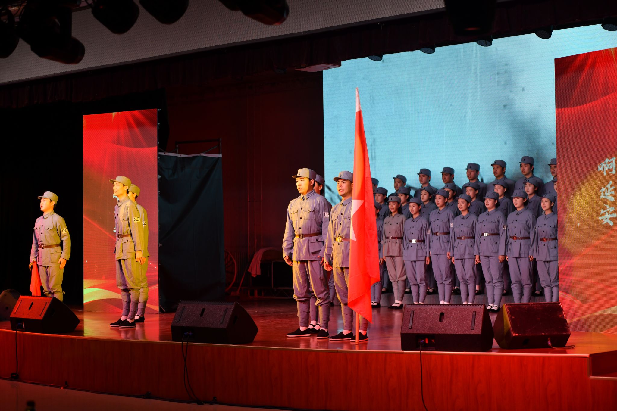 活動(dòng)分為序幕、信念之路、思想之炬、為民之心、奮進(jìn)之力四大篇章、尾聲,包括《延安頌》《延安窯洞有馬列主義》《全心全意為人民服務(wù)的楷模》《領(lǐng)航》等8個(gè)節(jié)目,并由4位知名專家分別圍繞“為什么中國(guó)的希望在延安”“為什么延安窯洞有馬列主義”“為什么要將為人民服務(wù)作為黨的根本宗旨寫入《中國(guó)共產(chǎn)黨章程》”“為什么習(xí)近平總書記囑托無論將來物質(zhì)生活多么豐富,自力更生艱苦奮斗的精神一定不能丟”等核心問題,進(jìn)行深入淺出的理論闡釋,實(shí)現(xiàn)了文藝表達(dá)與思想教育的深度融合,活動(dòng)現(xiàn)場(chǎng)莊重?zé)崃?,洋溢著濃厚的紅色氛圍。其中,我校音樂系教師李強(qiáng)、田立分別演繹了《領(lǐng)航》、《山丹丹開花紅艷艷》歌曲,我校合唱團(tuán)以激昂的歌聲合唱了《延安頌》《領(lǐng)航》等曲目,傳遞出新時(shí)代青年繼承革命傳統(tǒng)、勇?lián)姑膱?jiān)定信念。