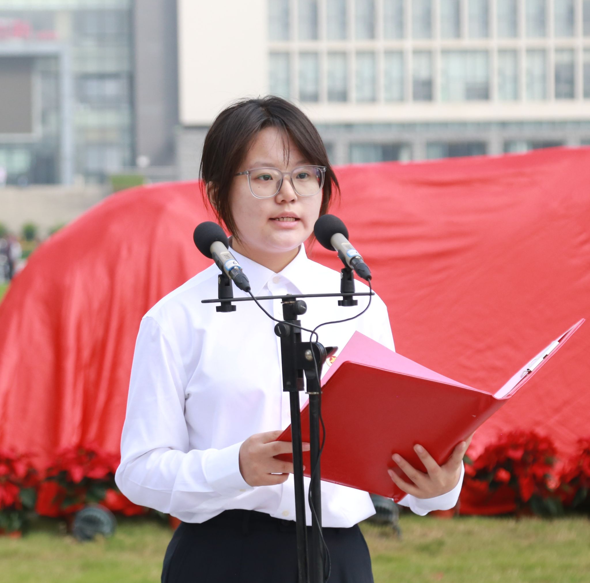 機械〈卓越班〉2502班劉穎珊同學(xué)作為學(xué)生代表發(fā)言。她號召全體同學(xué)珍惜優(yōu)越的學(xué)習(xí)環(huán)境,牢記“好學(xué)力行、自強不息”的校訓(xùn),堅定理想信念,錘煉過硬本領(lǐng),將個人成長融入國家發(fā)展偉業(yè),不負(fù)時代,不負(fù)韶華,以實際行動踐行新時代青年的初心與使命。