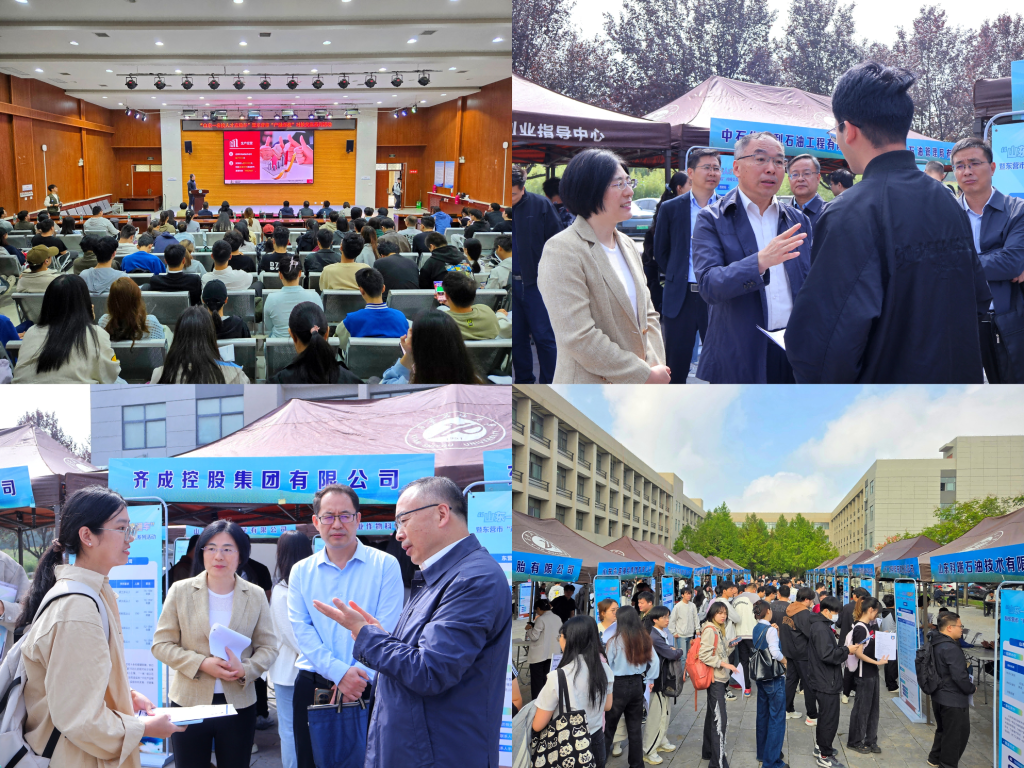 與此同時(shí),東營市組團(tuán)專場(chǎng)招聘會(huì)在崇文樓118報(bào)告廳和江漢林廣場(chǎng)同步開展,東營市公共就業(yè)和人才服務(wù)中心副主任朱鳳鸞詳細(xì)介紹了當(dāng)?shù)厝瞬虐l(fā)展環(huán)境、住房補(bǔ)貼、就業(yè)扶持等優(yōu)惠政策。多家重點(diǎn)企業(yè)代表圍繞企業(yè)主營業(yè)務(wù)、崗位需求、發(fā)展前景等內(nèi)容進(jìn)行宣講,現(xiàn)場(chǎng)解答學(xué)生關(guān)于職業(yè)規(guī)劃、崗位要求等疑問,吸引兩百余名畢業(yè)生到場(chǎng)聆聽,為畢業(yè)生與企業(yè)搭建起直接溝通的橋梁。宣講會(huì)后,省市領(lǐng)導(dǎo)在學(xué)校相關(guān)負(fù)責(zé)人陪同下前往招聘現(xiàn)場(chǎng),實(shí)地查看畢業(yè)生求職情況。現(xiàn)場(chǎng)氣氛熱烈,畢業(yè)生們積極與企業(yè)招聘人員交流,圍繞崗位專業(yè)要求、薪資待遇、職業(yè)發(fā)展空間等問題深入咨詢,部分學(xué)生與企業(yè)初步達(dá)成就業(yè)意向。隨后,校地雙方領(lǐng)導(dǎo)參觀我校校史館及鐵人王進(jìn)喜紀(jì)念館,通過歷史圖片、實(shí)物展品與文字介紹,全面了解我校的發(fā)展歷程、辦學(xué)成就與人才培養(yǎng)特色,對(duì)我校長期扎根能源領(lǐng)域、為國家能源事業(yè)發(fā)展作出的貢獻(xiàn)給予高度評(píng)價(jià)。