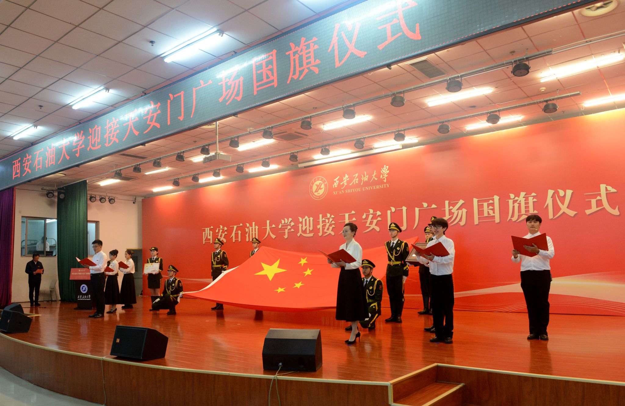 10月12日,時值西安石油大學74周年校慶日,我校在鄠邑校區(qū)騰輝大學生活動中心舉行迎接天安門廣場國旗儀式。一面曾于2021年10月12日,暨我校建校70周年校慶日,在天安門廣場升掛過的國旗,經(jīng)天安門地區(qū)管委會批準贈予學校。全體校領導、處科級干部代表、民主黨派代表、校友代表及師生代表共計600余人參加儀式,儀式由副校長種宇宏主持。