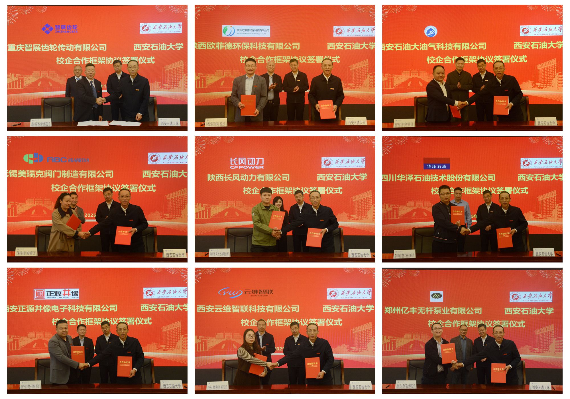 10月12日上午,我校在鄠邑校區(qū)隆重舉行校企合作簽約儀式暨企業(yè)技術需求發(fā)布會。校長王進富、校黨委副書記張木、副校長張君濤及重慶智展齒輪傳動有限公司董事長何榮、陜西歐菲德環(huán)保科技有限公司董事長卜濤、西安石油大油氣科技有限公司董事長鄧鵬、陜西長風動力有限公司總經理王東芹、無錫美瑞克閥門制造有限公司總經理孫海東、四川華澤石油技術股份有限公司總經理張晨、西安正源井像電子科技有限公司總經理王曉農、西安云維智聯(lián)科技有限公司總經理王紅春、鄭州億豐無桿泵業(yè)有限公司總經理徐正國出席會議。會議由副校長種宇宏主持。