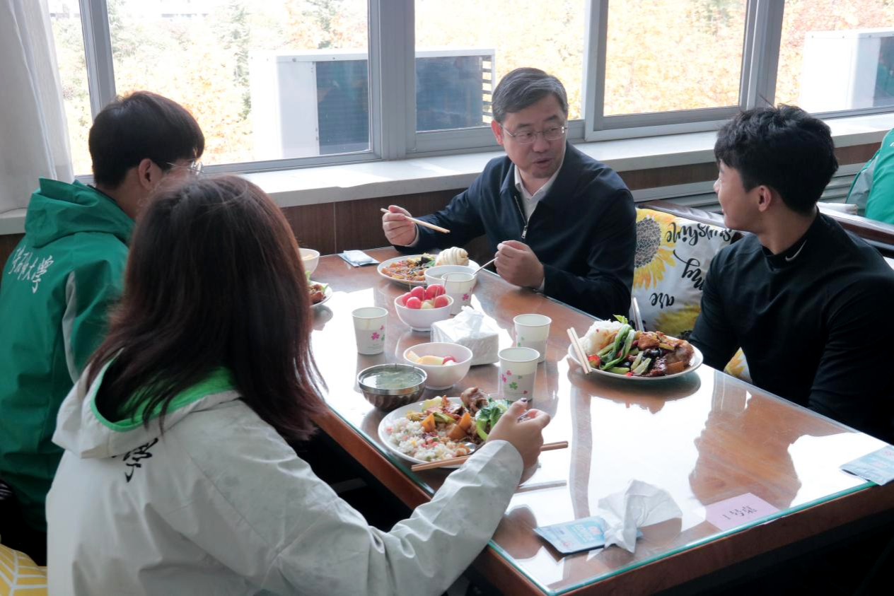 儀式結(jié)束后,校領(lǐng)導(dǎo)以及各相關(guān)職能部門和學(xué)院負(fù)責(zé)人與運(yùn)動(dòng)員代表共同舉行了“師生午餐會(huì)”,并向同學(xué)們贈(zèng)送了紀(jì)念品。餐桌上,與會(huì)各位老師與學(xué)生們親切交流,詢問(wèn)運(yùn)動(dòng)訓(xùn)練和在校生活情況,積極關(guān)心和回應(yīng)同學(xué)們近期關(guān)注和遇到的各類問(wèn)題,在學(xué)習(xí)、就業(yè)、生涯規(guī)劃等方面給予同學(xué)們很多建議。大家紛紛表示,校領(lǐng)導(dǎo)及老師們的關(guān)懷讓他們倍感溫暖,未來(lái)將以更優(yōu)異的成績(jī)回報(bào)母校。