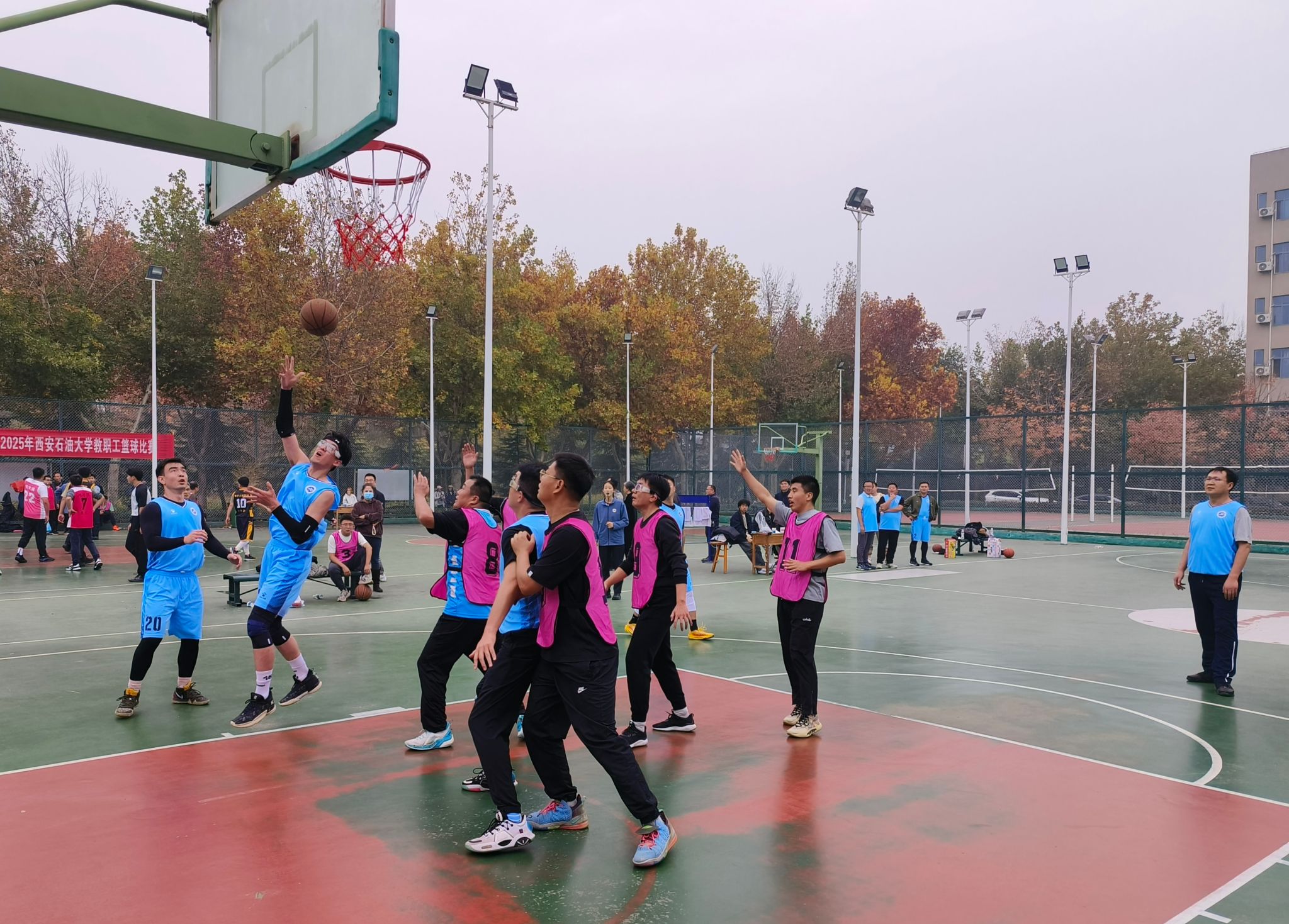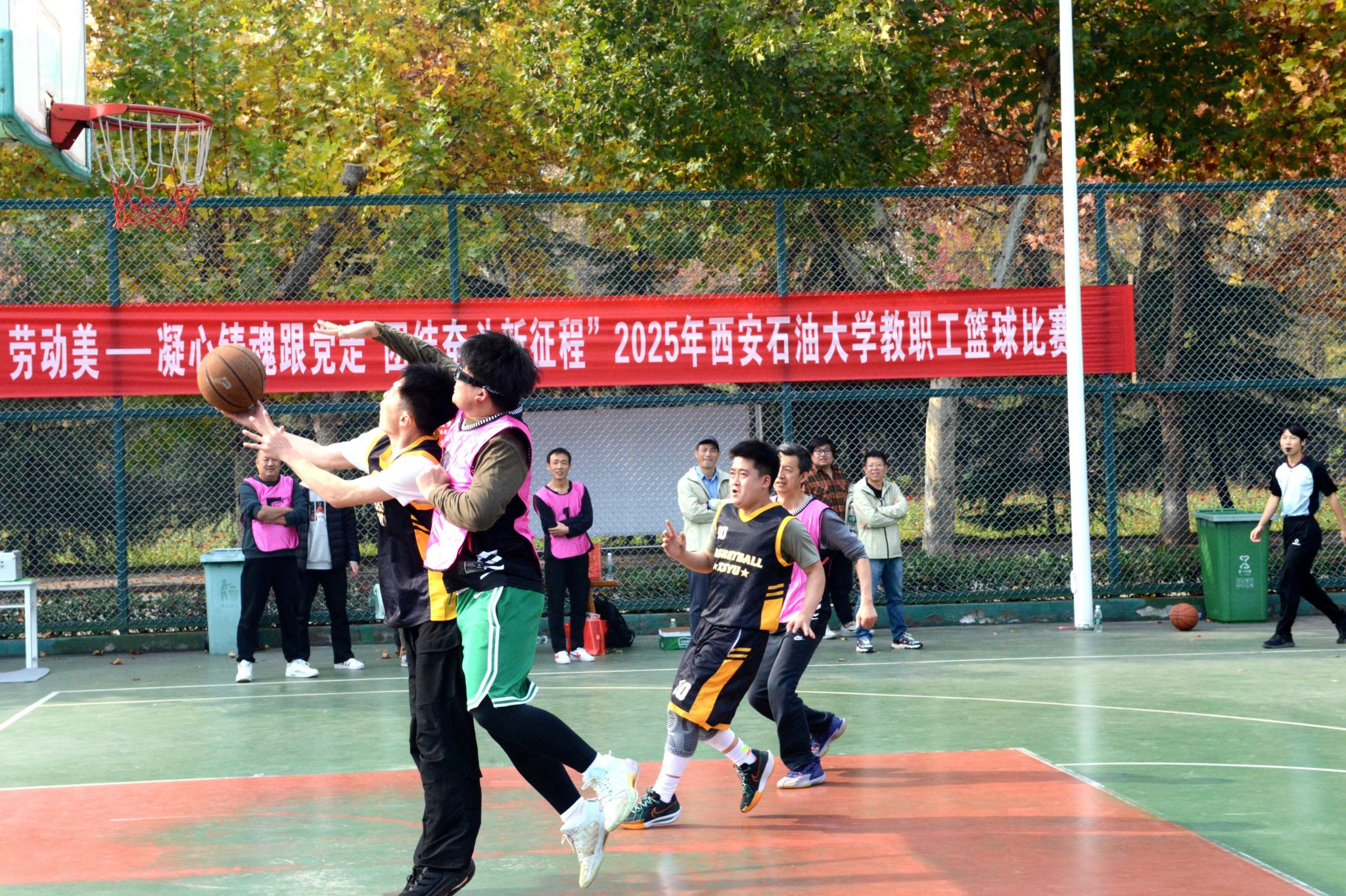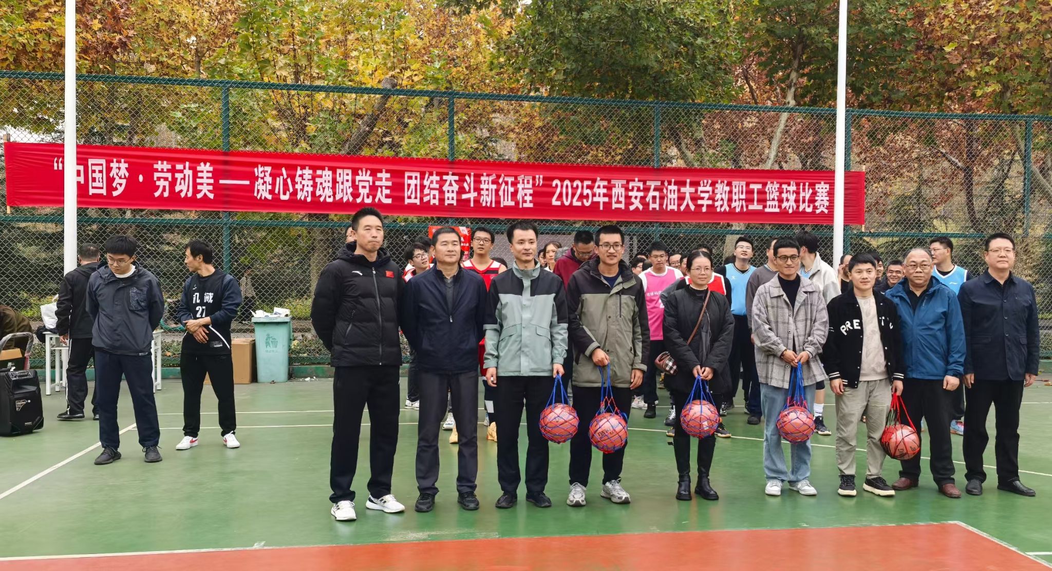 為豐富教職工業(yè)余文化生活,增強(qiáng)團(tuán)隊(duì)凝聚力,營(yíng)造積極向上的校園文化氛圍,由校工會(huì)主辦、體育學(xué)院承辦的“中國(guó)夢(mèng) 勞動(dòng)美——凝心鑄魂跟黨走 團(tuán)結(jié)奮斗新征程”2025年西安石油大學(xué)教職工籃球賽于10月20日在我校鄠邑校區(qū)東籃球場(chǎng)火熱開(kāi)賽。本次賽事吸引了來(lái)自全?;鶎庸?huì)13支代表隊(duì)、共計(jì)近110名教職工運(yùn)動(dòng)員踴躍參與。經(jīng)過(guò)3周、30場(chǎng)緊張激烈的比賽角逐,賽事于11月5日?qǐng)A滿落下帷幕。