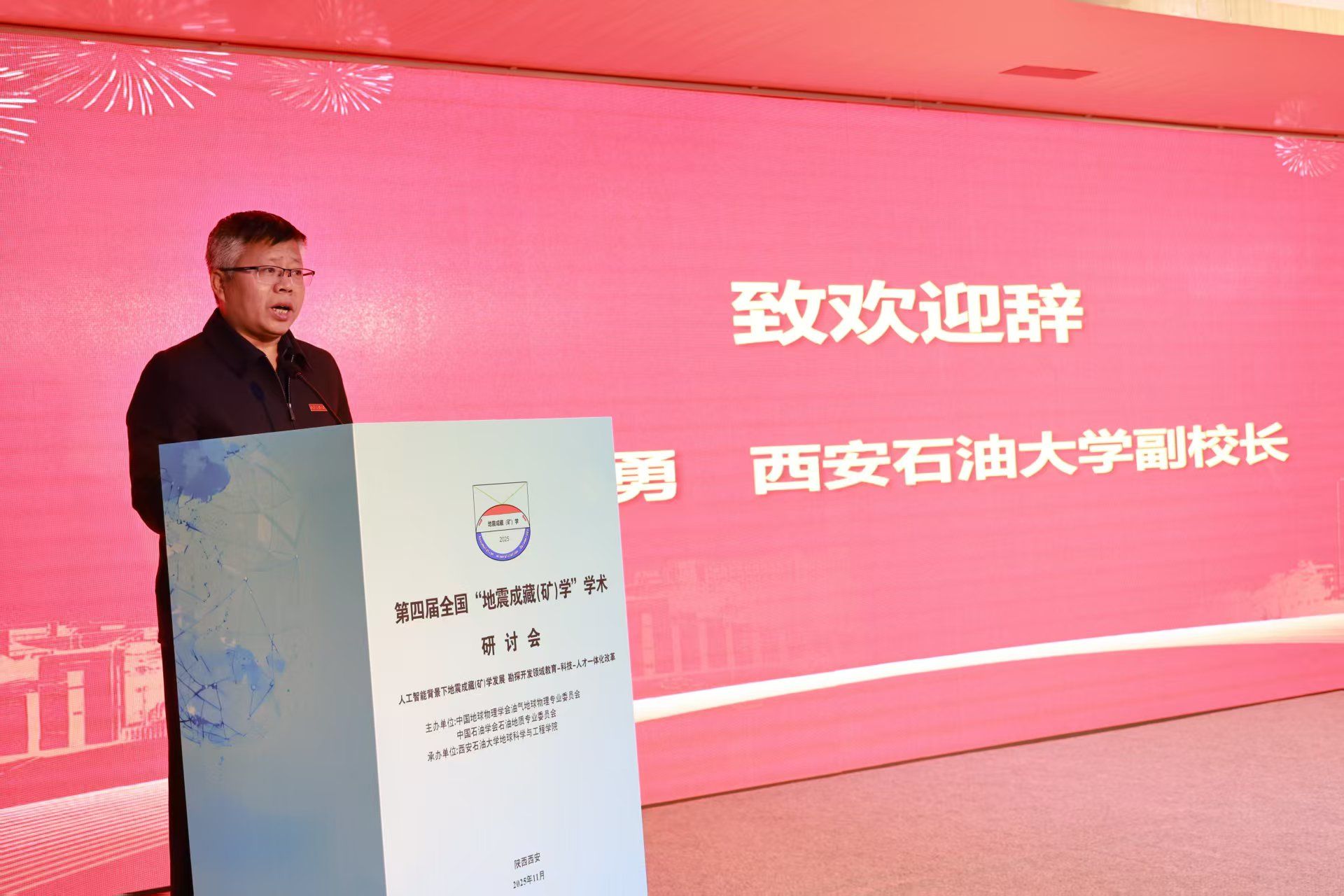 我校副校長張驍勇代表會議承辦單位向與會嘉賓表示熱烈歡迎,并表示,地震成藏(礦)學(xué)作為一門融合了現(xiàn)代油氣成藏(成礦)理論與先進(jìn)地球物理技術(shù)的新興交叉學(xué)科,正憑借其獨(dú)特的技術(shù)優(yōu)勢與理論價(jià)值,成為破解復(fù)雜地質(zhì)條件下能源勘探難題的關(guān)鍵力量,為行業(yè)高質(zhì)量發(fā)展提供了重要支撐。面對能源安全新形勢,推動地震成藏(礦)學(xué)與人工智能等前沿技術(shù)融合,是服務(wù)國家戰(zhàn)略需求的必然選擇。