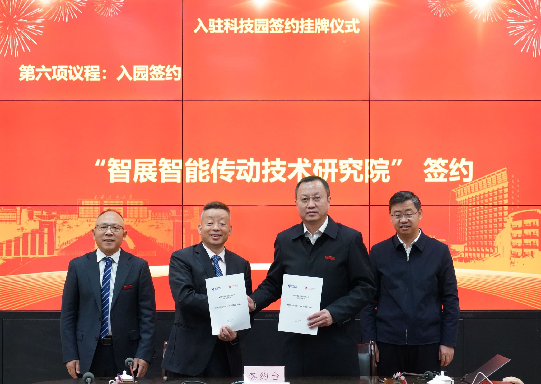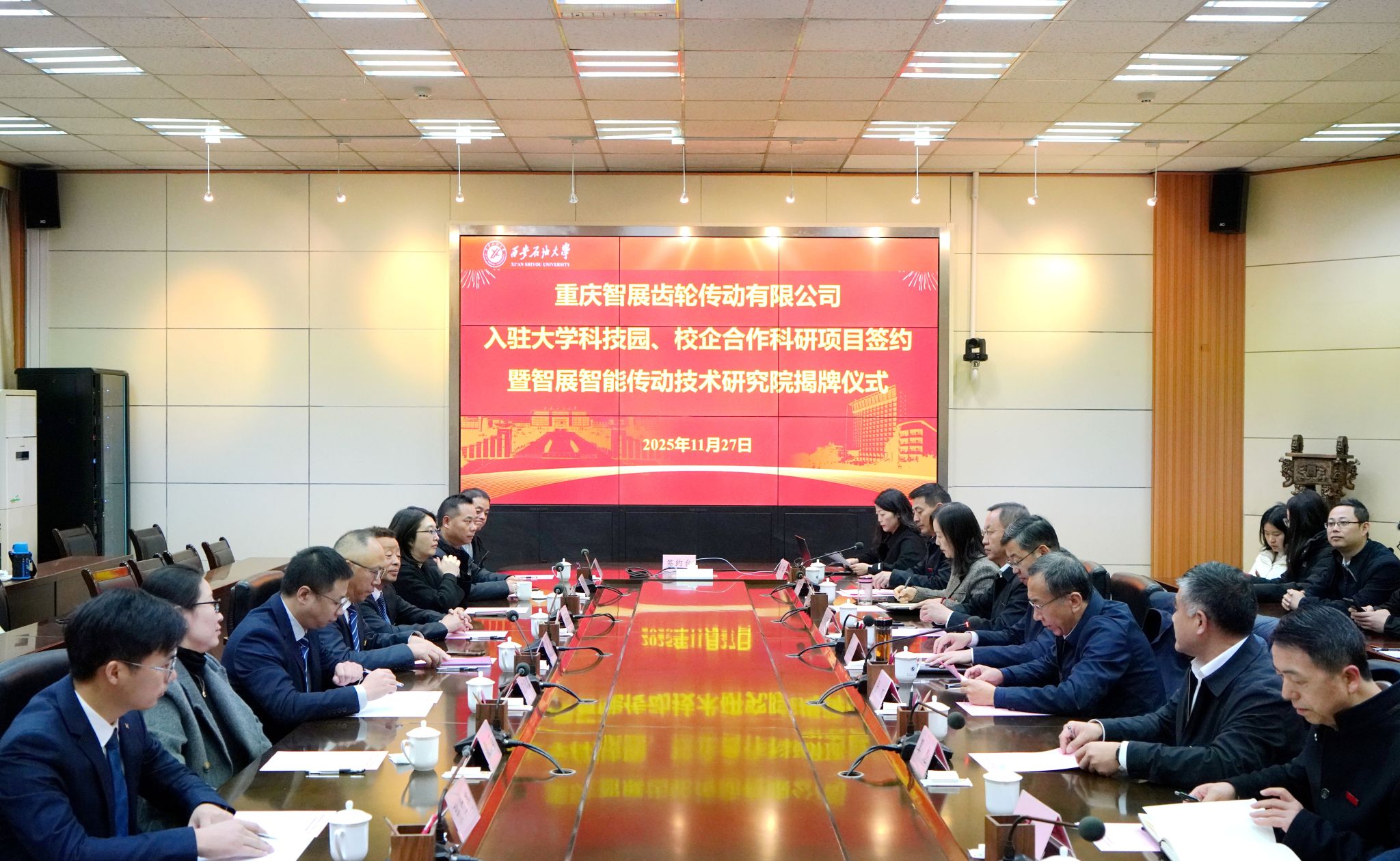 我校舉行重慶智展齒輪傳動有限公司入駐大學(xué)科技園、校企合作科研項目簽約暨智展智能傳動技術(shù)研究院揭牌儀式