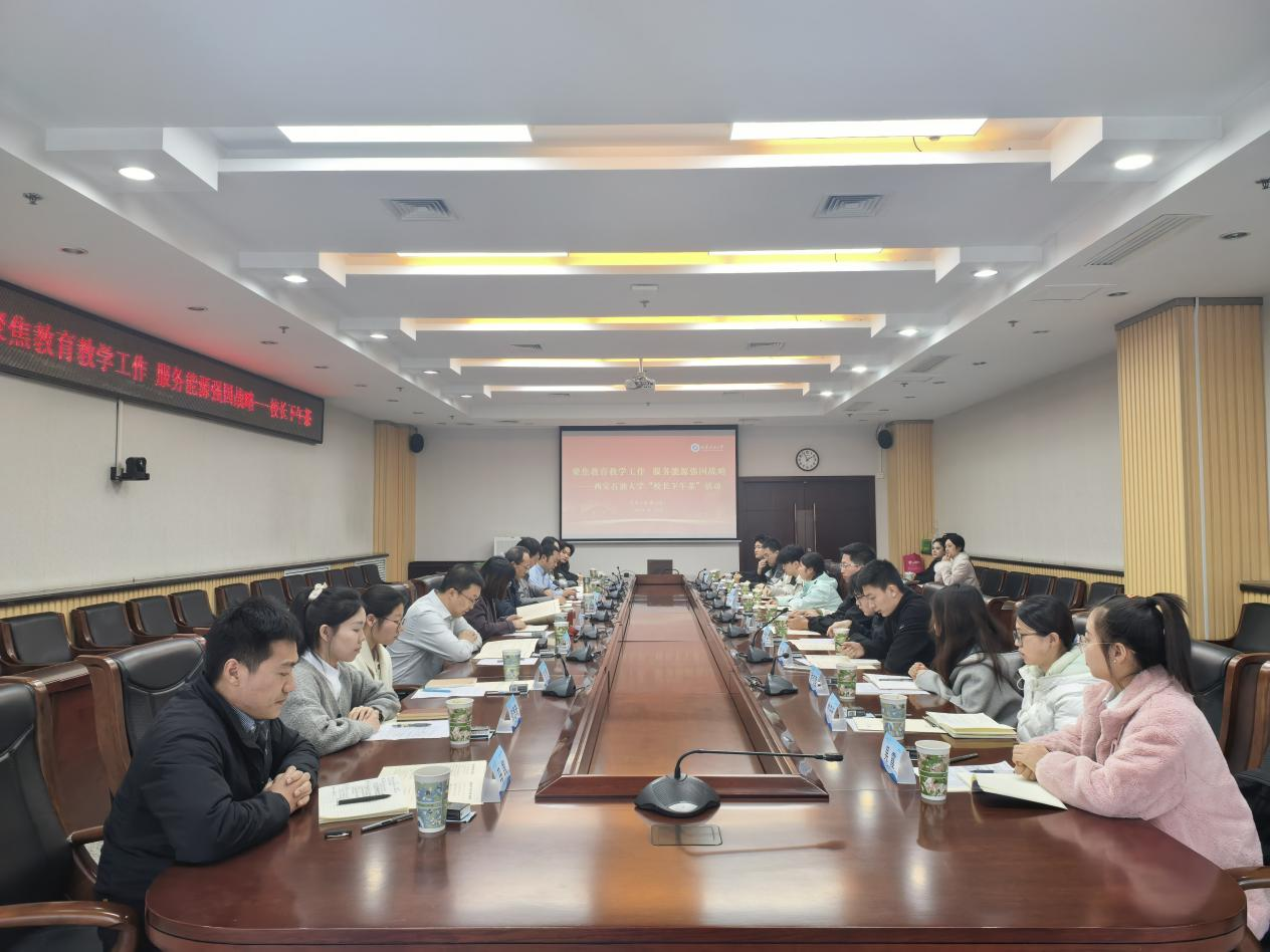 本次活動(dòng)以“聚焦教育教學(xué)工作,服務(wù)能源強(qiáng)國(guó)戰(zhàn)略”為主題,來(lái)自各院系的10名本科生代表和9名研究生代表圍繞主題、暢所欲言,與老師們共話成長(zhǎng)成才。張君濤首先介紹了活動(dòng)設(shè)立初衷,鼓勵(lì)同學(xué)們?cè)谳p松的氛圍中真實(shí)表達(dá)意見(jiàn)建議,共同關(guān)注學(xué)校改革與發(fā)展。他表示,學(xué)校將堅(jiān)持開(kāi)放辦學(xué),充分采納學(xué)生意見(jiàn)建議,推動(dòng)各項(xiàng)舉措落地落實(shí)。