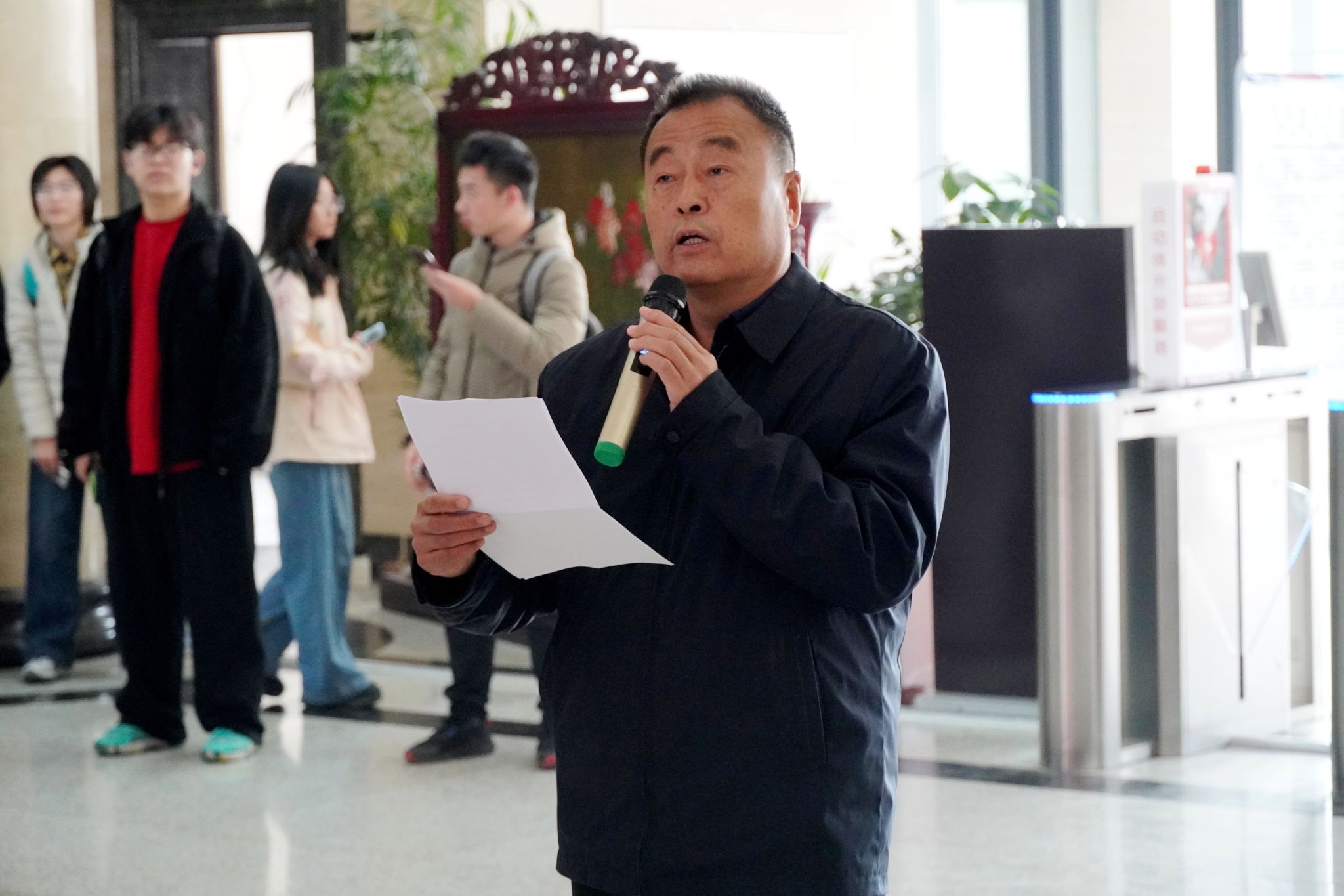 12月18日上午,“墨香迎新歲師生共華章”2026迎元旦師生書法聯(lián)誼會在鄠邑校區(qū)圖書館舉行,此次活動由圖書館、離退休工作處、人文學(xué)院、大學(xué)生書法協(xié)會聯(lián)合舉辦。校黨委副書記程永清出席活動并致辭,相關(guān)職能部門和院(系)負責(zé)人、校老年書畫協(xié)會和退休老教師代表應(yīng)邀出席,我校大學(xué)生書畫協(xié)會全體會員、人文學(xué)院學(xué)生代表參加了活動,活動由圖書館館長李濤主持。