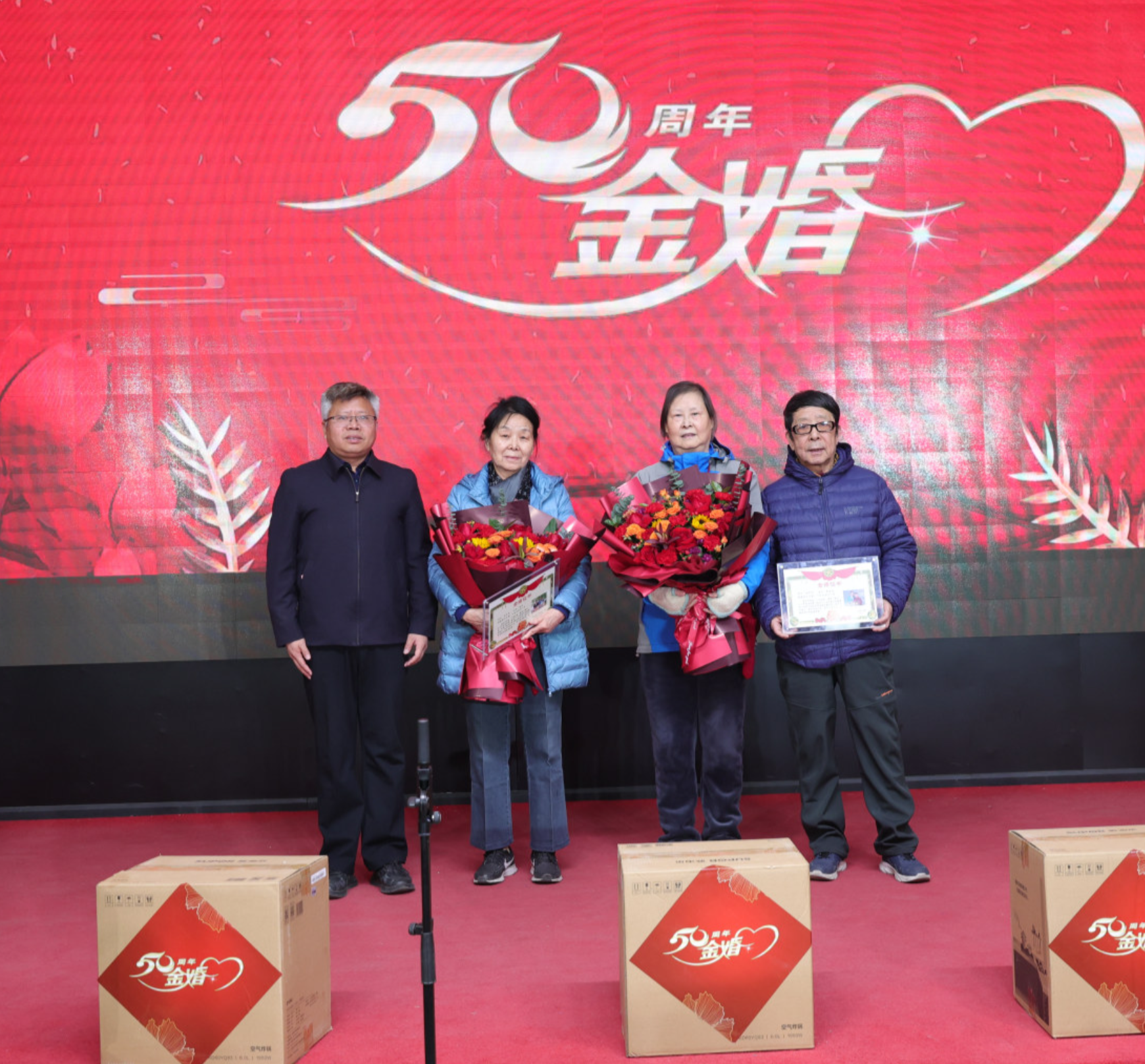 聯(lián)歡會前,大家歡聚一堂,共同見證、慶祝四對金婚伴侶的珍貴時刻,并頒發(fā)了證書、鮮花和紀(jì)念品。