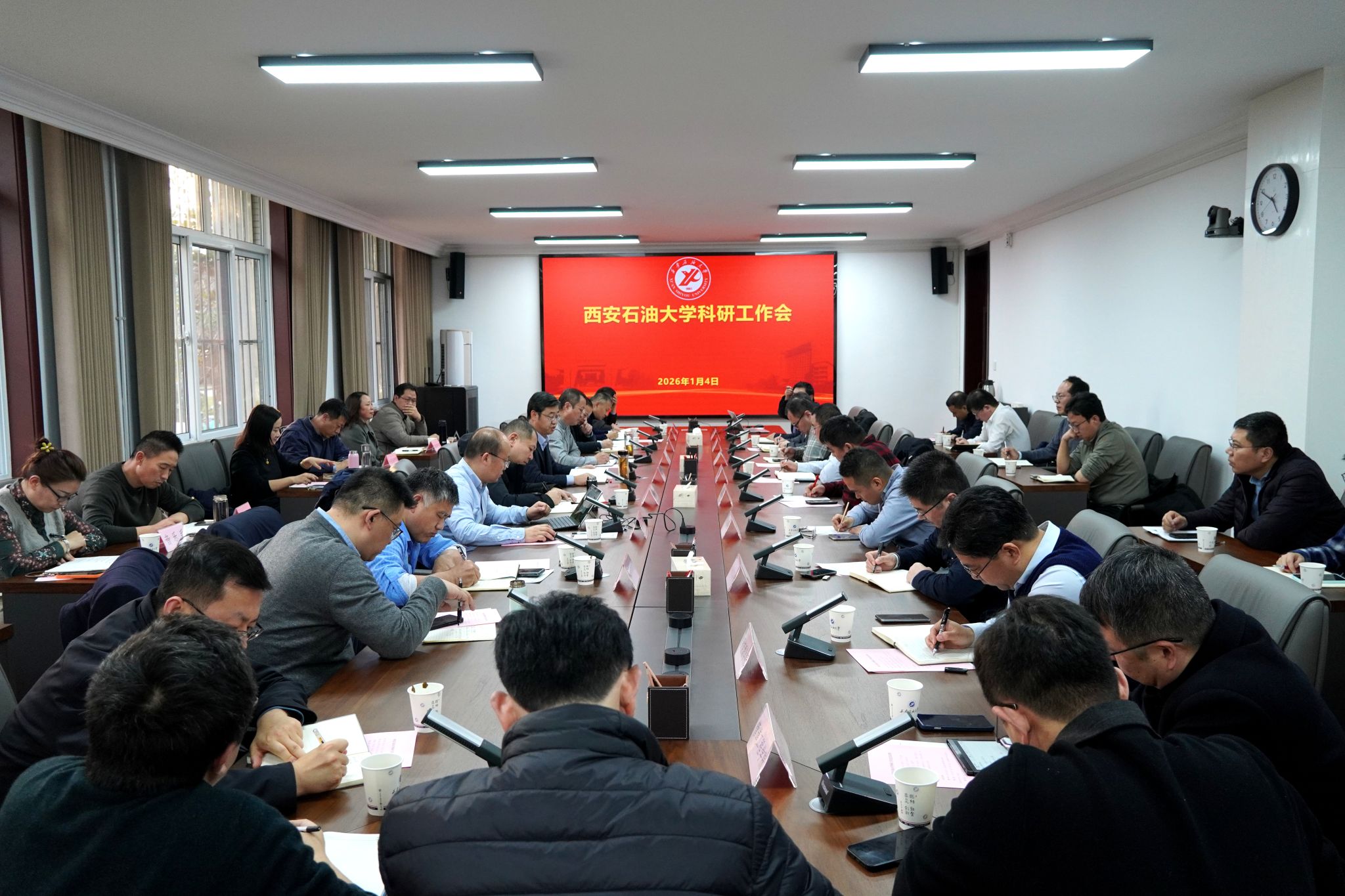 王進富作總結(jié)講話,他對學校2025年科研創(chuàng)新工作成效表示充分肯定,對各院(系)的辛勤付出表示衷心感謝,對下一步科研工作提出具體要求。一要統(tǒng)一思想。2025年度科研創(chuàng)新工作邁上新臺階,提振了全校科研工作者的信心。要進一步統(tǒng)一思想,持續(xù)強化有組織的科研,改革各種機制體制問題,確保“十五五”規(guī)劃取得良好開局。二要正視問題。“十四五”期間,學??蒲幸?guī)模與層次顯著提升,標志性成果不斷涌現(xiàn),但是面對行業(yè)競爭和資源短缺,學??蒲泄ぷ鬟€存在不足。第一,有組織科研亟待加強,具體表現(xiàn)在大項目不夠多,跨學科大團隊的協(xié)作不夠,科研生態(tài)還需進一步優(yōu)化,因此要從學校的政策層面、評價層面、管理層面等持續(xù)發(fā)力。第二,青年科研骨干成長體系亟待優(yōu)化,青年教師作為學??蒲泄ぷ鞯闹髁姾秃髠淞α浚ㄟ^大科研項目培養(yǎng)青年科研骨干,在政策創(chuàng)新上支持青年教師主體作用發(fā)揮和未來科研力量培育。第三,學科轉(zhuǎn)化優(yōu)勢亟待提升,學校作為行業(yè)特色鮮明的省屬高水平大學,主干學科必須要找到自身的獨特優(yōu)勢,通過有組織的方式來不斷凝練和培育科研特色方向和優(yōu)勢領(lǐng)域。三要謀劃未來。第一,強化有組織科研,優(yōu)化公關(guān)模式。區(qū)域上重點突出鄂爾多斯盆地,關(guān)注延長和長慶等重點領(lǐng)域,打破學科壁壘,形成跨學科、跨專業(yè)的科研團隊。第二,深化科研政策改革,營造良好的創(chuàng)新生態(tài)。首先創(chuàng)新思路,從科研合作組織的層面上,要改變傳統(tǒng)單兵作戰(zhàn)和科研合作模式;其次創(chuàng)新政策,科研管理部門要不斷強化資源配置,多途徑調(diào)動科研工作者積極性;再次,創(chuàng)新組織和創(chuàng)新評價,要不斷改革人事制度和人才政策,強化科研大項目的引領(lǐng)作用,激活個體的動力和活力。第三,深化開放合作,拓展科研格局。要不斷深化國際開放合作,持續(xù)開放辦學,與龍頭企業(yè)開展實質(zhì)合作,共建國家級平臺、共同承辦國際會議等,充分依托學校國際合作辦學的優(yōu)勢,積極開展國際科研合作。王進富最后強調(diào),2026年是“十五五”規(guī)劃的開局之年,科研工作要更加聚焦“兩深一非一老”油氣勘探開發(fā)主戰(zhàn)場,緊密服務(wù)國家重大戰(zhàn)略需求和區(qū)域經(jīng)濟社會發(fā)展。立足學校自身發(fā)展定位,緊密對接產(chǎn)業(yè)需求,推動產(chǎn)業(yè)和科技創(chuàng)新協(xié)同發(fā)展,激發(fā)教師科研創(chuàng)新的動力與潛力。