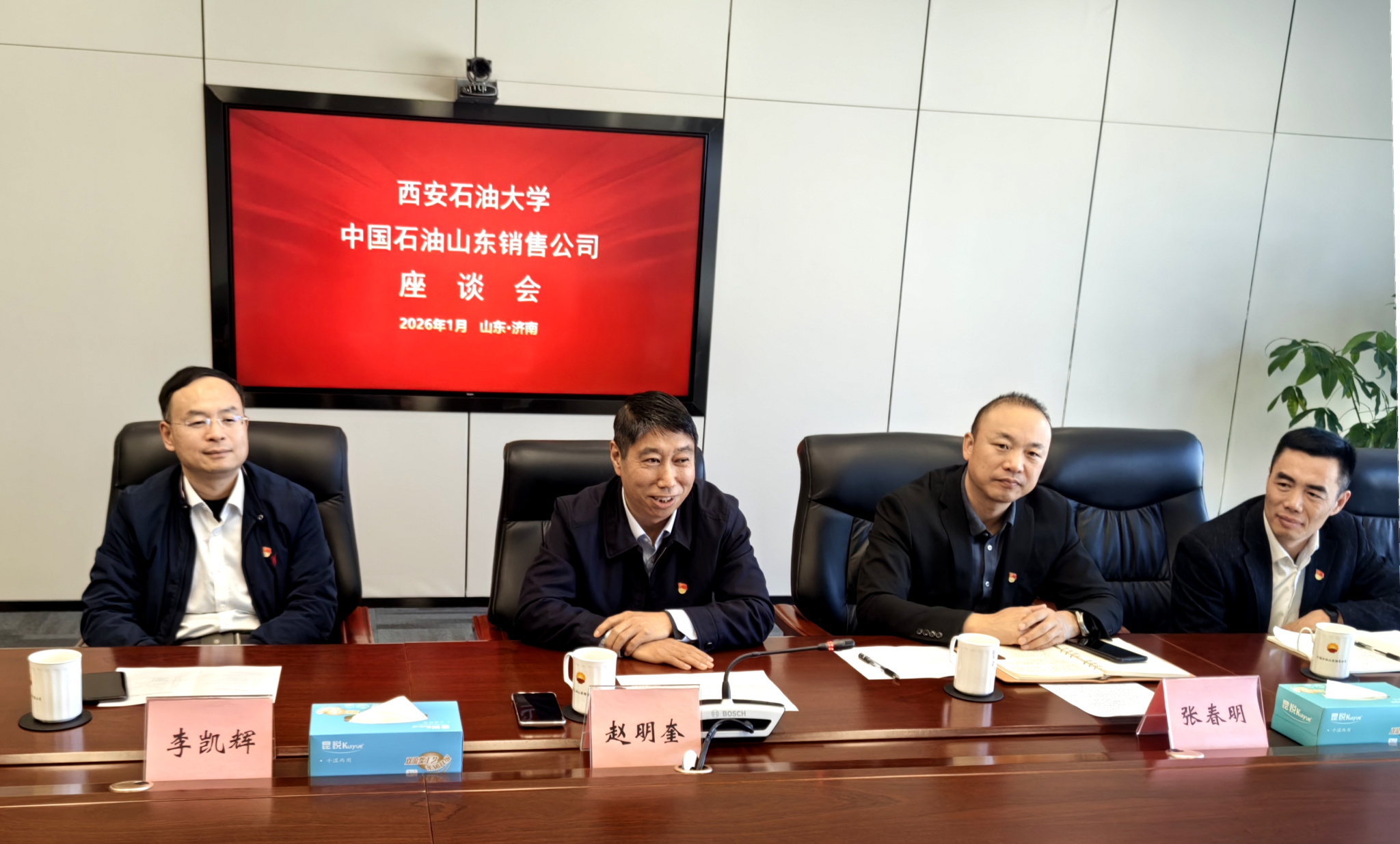1月7日上午,種宇宏一行來到中石油山東銷售公司。公司執(zhí)行董事、黨委書記趙明奎攜總會計師李凱輝及校友代表共同參與座談,現場氛圍熱烈融洽。座談中,趙明奎結合企業(yè)發(fā)展實踐,詳細介紹了公司在油品銷售網絡優(yōu)化、綠色能源推廣、數字化運營等方面的顯著成效,特別強調“人才是企業(yè)發(fā)展的第一資源”,對學校長期以來輸送的優(yōu)質人才給予高度評價,感謝學校為行業(yè)發(fā)展提供的堅實人才支撐。種宇宏詳細介紹了學校在學科建設、科研成果轉化、人才培養(yǎng)等方面的亮點,期待與中石油山東銷售在趙明奎書記的推動下,盡快落地一批務實合作項目,實現人才培養(yǎng)、技術攻關、產業(yè)升級的多方共贏。