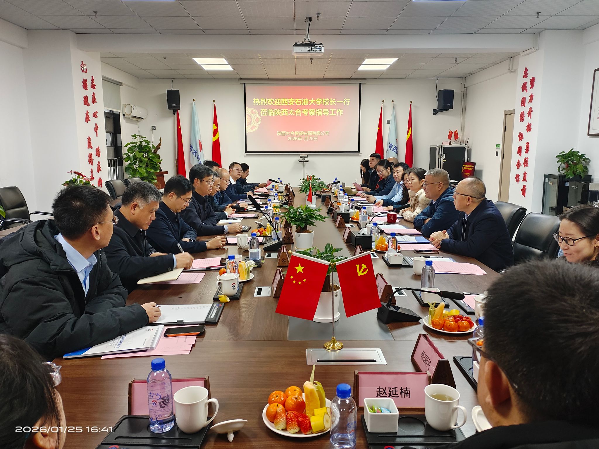 1月25日下午,校長(zhǎng)王進(jìn)富帶隊(duì)赴陜西太合智能鉆探有限公司(以下簡(jiǎn)稱“公司”)交流訪問(wèn)。校黨委副書(shū)記張木,學(xué)校校友企業(yè)家聯(lián)合會(huì)會(huì)長(zhǎng)、重慶智展齒輪傳動(dòng)有限公司董事長(zhǎng)何榮(我?;瘷C(jī)專業(yè)1992屆校友)陪同走訪。公司董事長(zhǎng)王義紅、財(cái)務(wù)總監(jiān)李歡(我校會(huì)計(jì)學(xué)專業(yè)2009屆校友)及有關(guān)部門負(fù)責(zé)同志出席座談會(huì)。雙方圍繞服務(wù)國(guó)家能源安全戰(zhàn)略、深化產(chǎn)學(xué)研深度融合等議題深入研討。