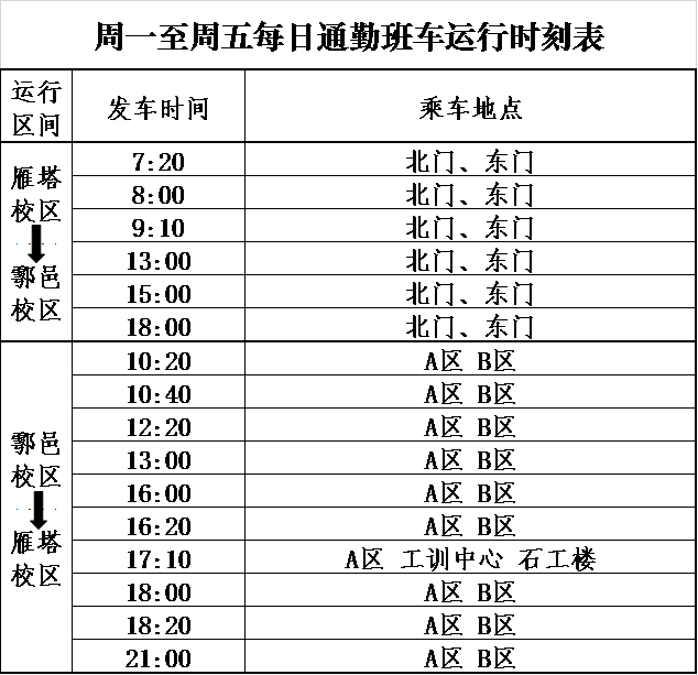 關(guān)于恢復(fù)雁塔校區(qū)通勤班車乘車點(diǎn)的通知