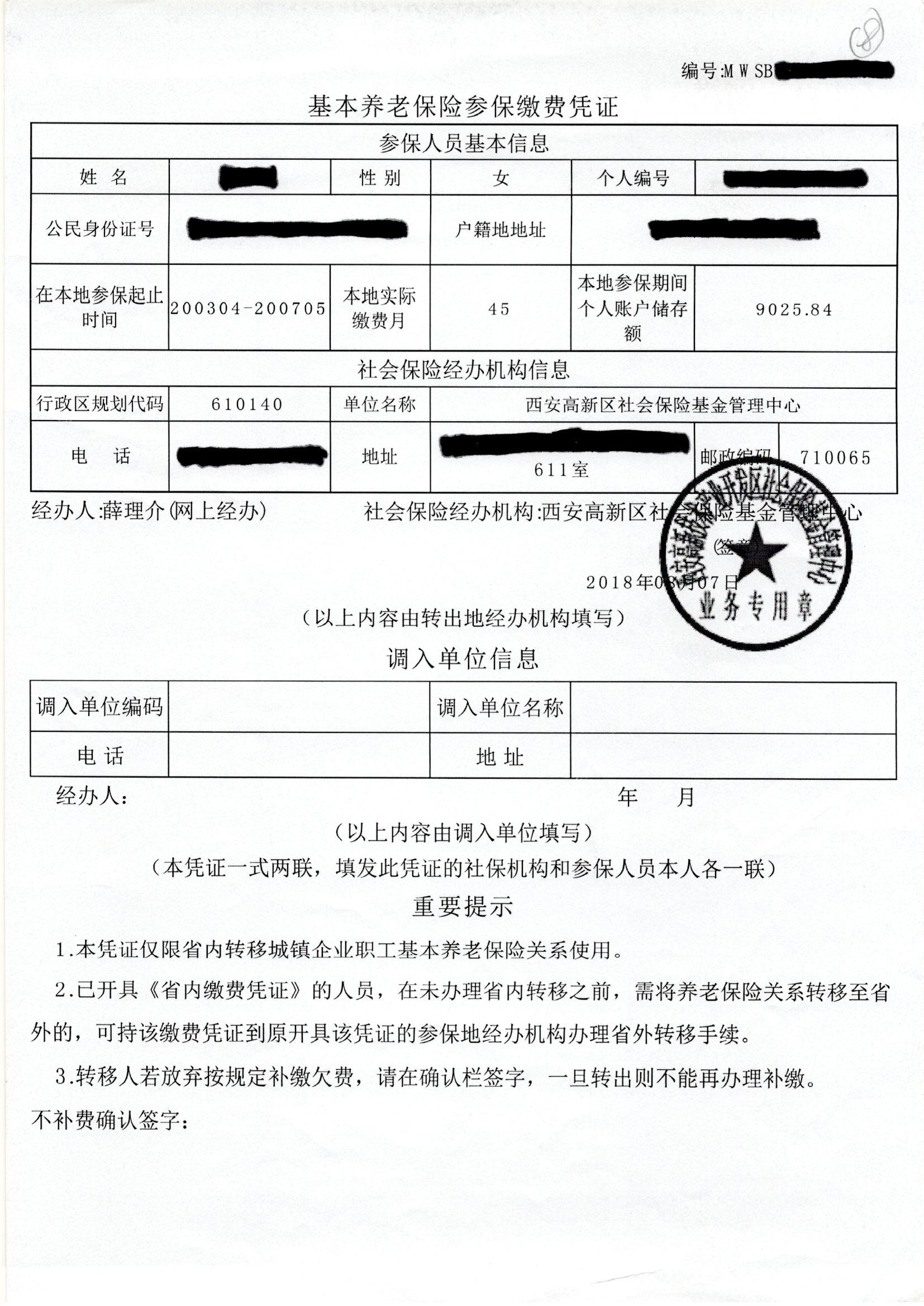 請符合以上條件,尚未提交養(yǎng)老保險(xiǎn)轉(zhuǎn)移所需相關(guān)資料的人員,咨詢原單位社保負(fù)責(zé)人和原社保機(jī)構(gòu)后,打印基本養(yǎng)老保險(xiǎn)參保繳費(fèi)憑證(見樣表),填寫?zhàn)B老保險(xiǎn)關(guān)系轉(zhuǎn)移申請表(見附表),對于原工作企業(yè)不存在或繳費(fèi)不正常的,在轉(zhuǎn)移申請表中一并進(jìn)行填寫。