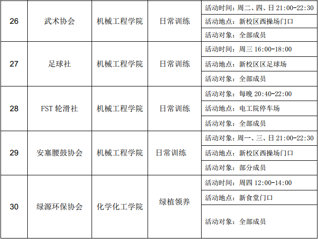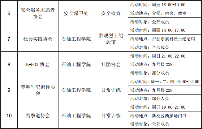 西安石油大學2016—2017學年第二學期第六周社團活動一覽表