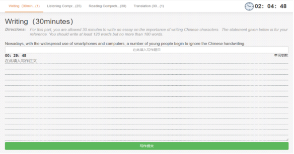 為扎實做好大學生英語四級考試備考工作,幫助我校學生熟悉四級考試流程和考試題型,調整學習狀態(tài),有效測試各題型掌握情況,查漏補缺,提升我校學生英語四級考試通過率和英語綜合能力,外國語學院于11月29日至12月3日和12月9-13日對學生分別進行兩次線上四級模擬測試。為達到良好的模擬測試效果,此次模考使用批改網平臺進行發(fā)布,外國語學院規(guī)劃考試安排、細化考試流程,??碱}型全面、來源權威,具有重要的模擬價值。