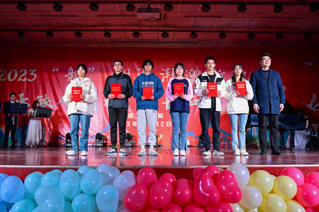 為了在全院學(xué)生中樹立典范,彰顯榜樣的力量,營造追求卓越”“比學(xué)趕幫超的良好氛圍,進(jìn)一步激勵(lì)廣大同學(xué)奮發(fā)成才,本次晚會還特別設(shè)置了表彰頒獎(jiǎng)環(huán)節(jié),對2022-2023學(xué)年獲得國家獎(jiǎng)學(xué)金、中國石油獎(jiǎng)學(xué)金的同學(xué);在學(xué)科競賽獲國家級、省級獎(jiǎng)項(xiàng)的團(tuán)隊(duì);在社會實(shí)踐活動中獲省級、校級獎(jiǎng)勵(lì)的優(yōu)秀代表;第十五屆大學(xué)生陽光體育節(jié)中獲獎(jiǎng)代表;2023年軍訓(xùn)優(yōu)秀學(xué)員代表等50余名獲獎(jiǎng)學(xué)生代表進(jìn)行了隆重表彰,與會領(lǐng)導(dǎo)嘉賓為獲獎(jiǎng)學(xué)生頒獎(jiǎng)。