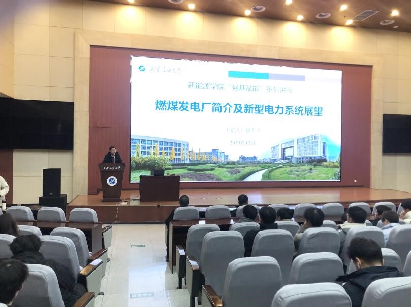 段東平從大唐蒲城發(fā)電有限責任公司簡介、燃煤發(fā)電廠工藝流程和新型電力系統(tǒng)構(gòu)建等三個方面,為同學們講授了在我國能源結(jié)構(gòu)轉(zhuǎn)型升級,實現(xiàn)“雙碳目標”的背景下,傳統(tǒng)火力發(fā)電廠的技術(shù)創(chuàng)新和構(gòu)建新型電力系統(tǒng)的舉措。闡明了適合我國資源稟賦特點的“新能源發(fā)電”和“火力發(fā)電”并存發(fā)展、優(yōu)勢互補的新型電力系統(tǒng)構(gòu)建體系。