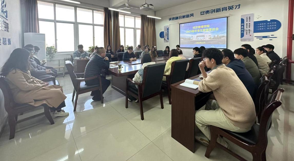 為全面掌握2024屆畢業(yè)生就業(yè)進展情況,深入了解畢業(yè)生求職就業(yè)過程中遇到的問題及困難,進一步提高就業(yè)指導服務的實效性,經(jīng)濟管理學院于12月6日在鄠邑校區(qū)崇文樓305會議室召開2024屆畢業(yè)生就業(yè)座談會。學院黨委副書記王剛,輔導員史陽、張碩,2024屆畢業(yè)生代表共40余人參加會議。