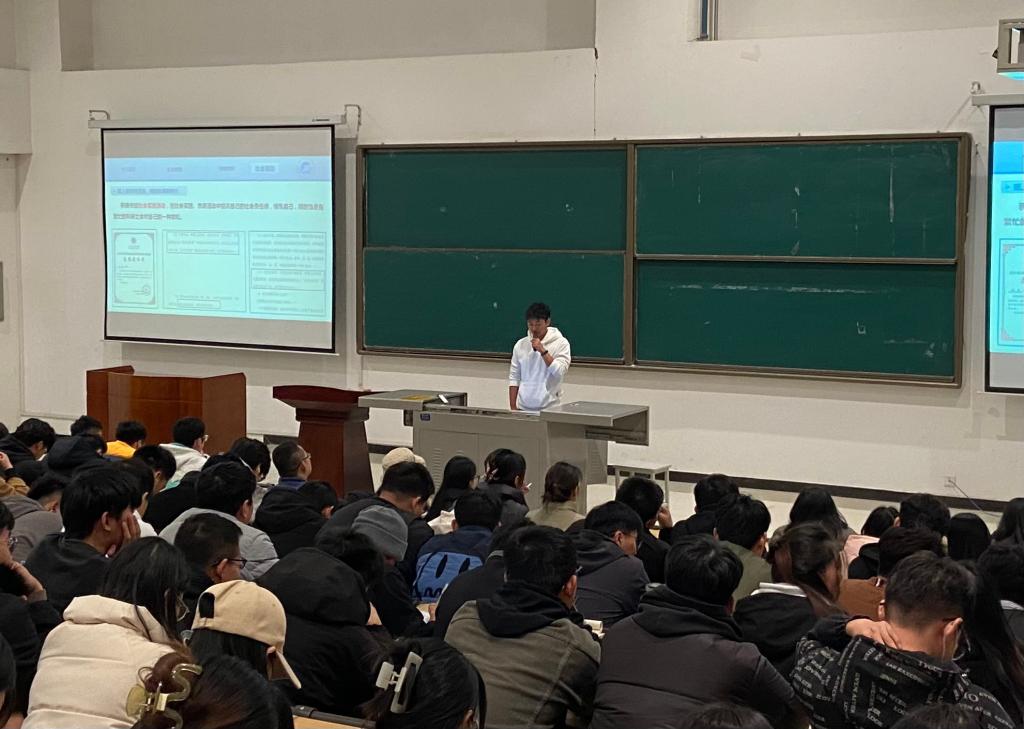 最后,黃景鵬作總結(jié)講話。他對兩名國獎代表從課程學(xué)習(xí)、科創(chuàng)項目、學(xué)科競賽、社會實踐等角度的精彩分享表示衷心感謝,并對他們的學(xué)習(xí)精神、學(xué)習(xí)方法和學(xué)習(xí)態(tài)度點贊。黃景鵬強調(diào),在所有榮譽的背后,都凝聚著他們無數(shù)的辛勤和汗水。并向同學(xué)們提出了三點要求:一是要端正學(xué)習(xí)態(tài)度,拒絕躺平,要充分認(rèn)識到學(xué)習(xí)的意義和價值,目光長遠,著眼于未來,學(xué)會居安思危;二是做好學(xué)業(yè)規(guī)劃,積極與導(dǎo)師聯(lián)系溝通,要倒排工期,掛圖作戰(zhàn),在每一個階段做正確和應(yīng)該做的事情。三是要積極行動起來,落實是一切工作的歸宿,要以釘釘子精神抓好落實,把各項學(xué)習(xí)計劃落實到位,只有崇尚實干、狠抓落實,才能不斷提升自身的核心競爭力,一步一個腳印朝著夢想奮進。