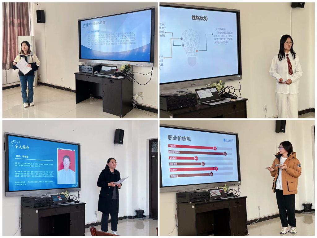 在答辯現(xiàn)場,13位選手通過PPT展示的方式,結(jié)合新媒體運營、品牌設(shè)計師、鄉(xiāng)村振興專員、室內(nèi)設(shè)計師、鄉(xiāng)村教師等崗位的實際情況,進行自我認識、職業(yè)分析、未來規(guī)劃、預(yù)期評估等方面的精彩闡述。評委根據(jù)現(xiàn)場表現(xiàn),對各位選手的職業(yè)生涯規(guī)劃完整性、邏輯性、PPT美觀性等方面進行全方位的點評和提問,對展示中出現(xiàn)的問題提出指正和建議。