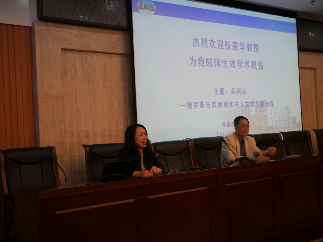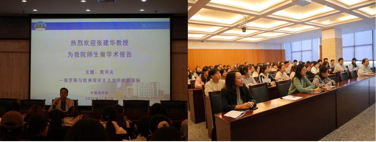 為提升師生專業(yè)素養(yǎng),拓展師生學(xué)術(shù)視野,進(jìn)一步促進(jìn)學(xué)院學(xué)科建設(shè)與發(fā)展。11月2日下午,外國語學(xué)院特別邀請北京外國語大學(xué)二級教授、博士生導(dǎo)師張建華教授開展了題為“契訶夫—俄羅斯與歐洲現(xiàn)實(shí)主義文學(xué)的新坐標(biāo)”的學(xué)術(shù)講座。外國語學(xué)院俄語系師生共100余人聆聽了本次講座。講座由副院長劉輝主持。
