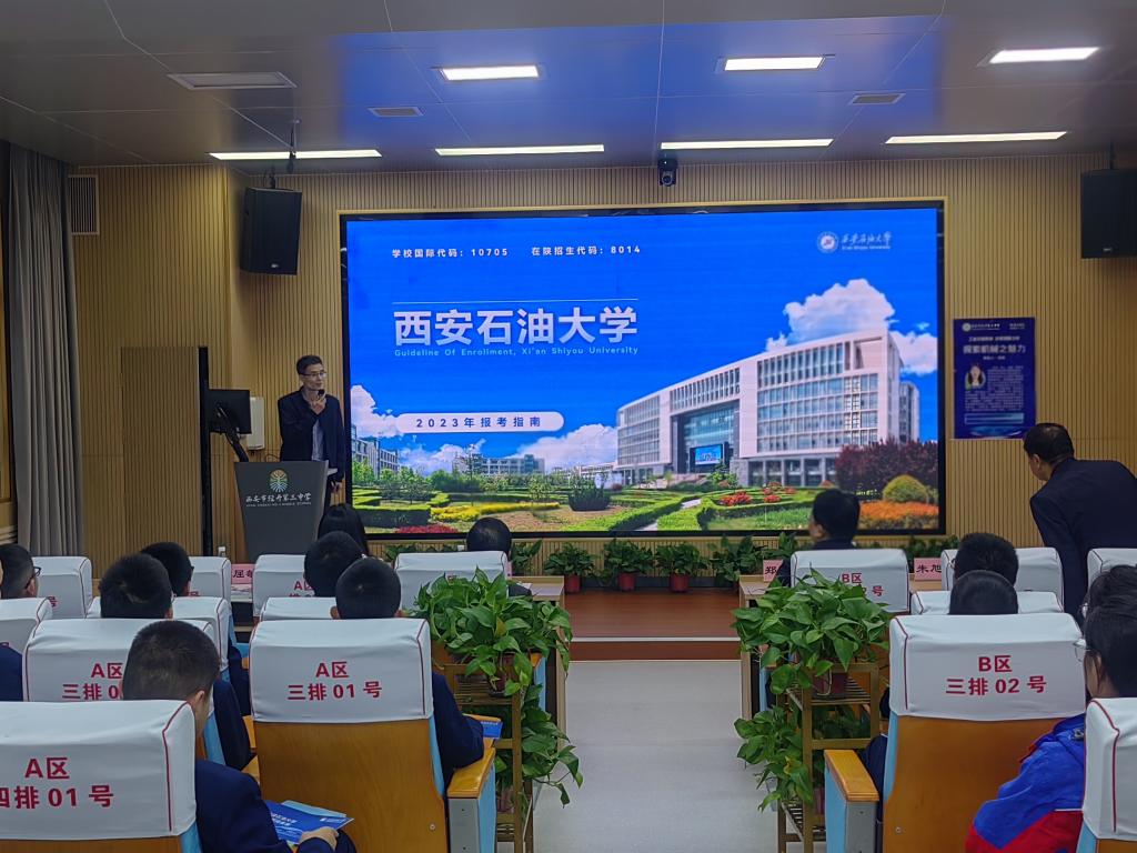 教務處招生辦公室主任屈敏佳介紹了西安石油大學招生概況和政策,增強了經(jīng)開三中師生對西安石油大學的了解,起到了良好的促進作用。