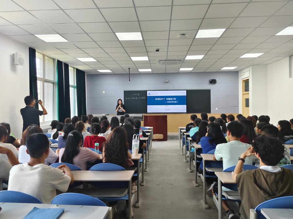 中文系主任王敬艷講述了專業(yè)發(fā)展、特色和師資力量,并以“新文科·新中文”為主題指出,新時代呼喚創(chuàng)新型文科,新文科的建設(shè)要立足于新科技時代。她強(qiáng)調(diào),新中文新在新的人才培養(yǎng)規(guī)格、新的研究對象和研究內(nèi)容、新的研究方式。王慧指出寫作、溝通、表達(dá)能力的重要性,鼓勵新生積極參加學(xué)科競賽,提高專業(yè)能力。她特別強(qiáng)調(diào),要重視英語學(xué)習(xí),為未來發(fā)展打好基礎(chǔ)。張奕則以自身求學(xué)經(jīng)歷為例,分享求學(xué)經(jīng)驗(yàn),激勵學(xué)生要加強(qiáng)語言文字能力的鍛煉和培養(yǎng)。