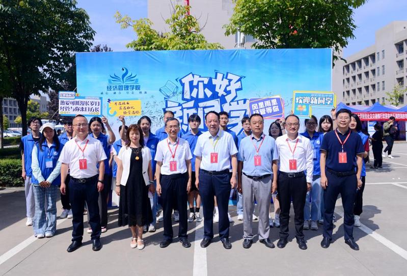 校黨委書記賽云秀、校長李天太、校黨委副書記張木、副校長程永清、總會計師樊曉民等黨政領(lǐng)導親臨現(xiàn)場看望2023級新生及家長,并慰問迎新工作人員。