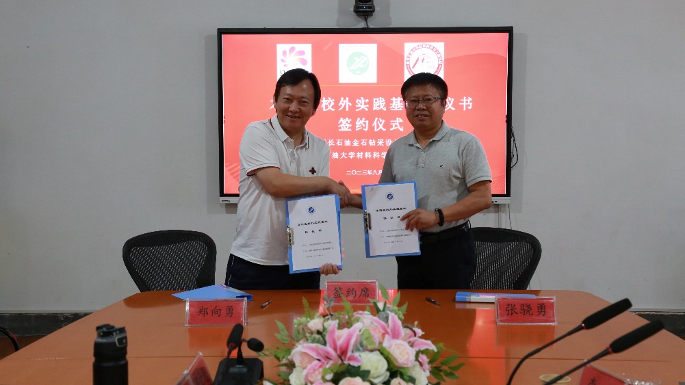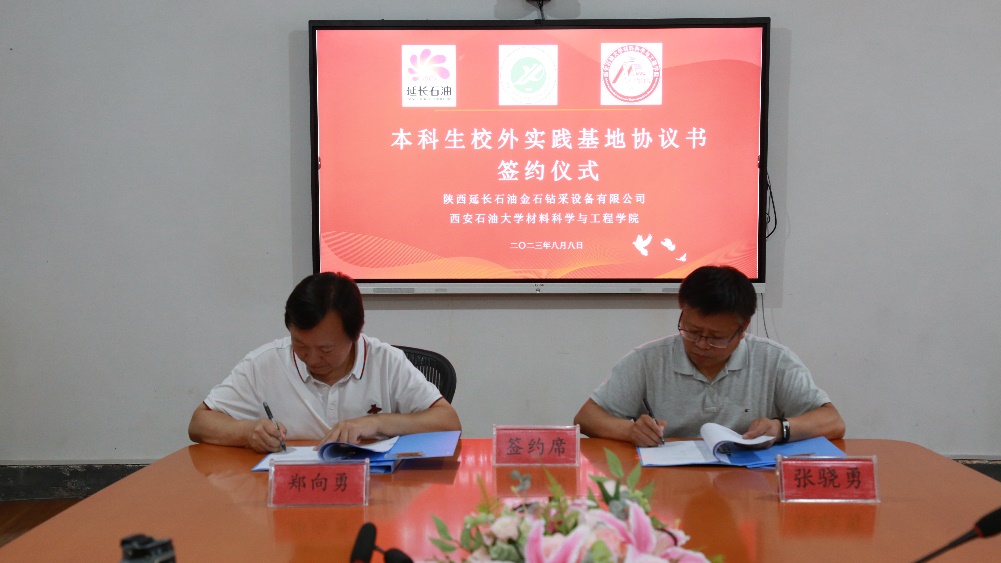 座談會(huì)上,西安石油大學(xué)材料科學(xué)與工程學(xué)院院長(zhǎng)張驍勇與陜西延長(zhǎng)石油金石鉆采設(shè)備有限公司鄭向勇總經(jīng)理作為代表簽署了本科生校外實(shí)踐基地協(xié)議和戰(zhàn)略合作協(xié)議。