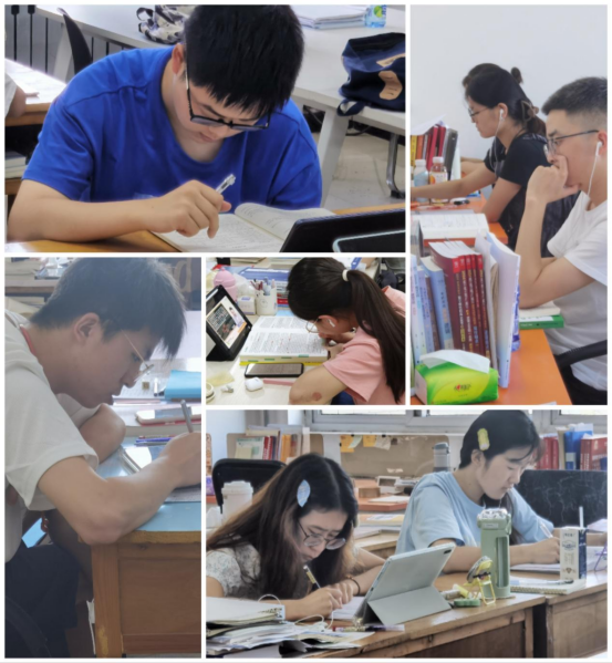 驕陽似火的盛夏,崇文樓403考研自習(xí)室涼爽宜人,同學(xué)們熱情高漲,干勁十足。老師們走進(jìn)考研自習(xí)室,勉勵(lì)同學(xué)們一是要拿出勤學(xué)肯干的“鉆勁”,考研復(fù)習(xí)是一個(gè)需要積累的過程,不可能一蹴而就,學(xué)如弓弩方可才如箭鏃,當(dāng)前正處于學(xué)習(xí)的黃金時(shí)期,應(yīng)該把學(xué)習(xí)作為一種責(zé)任、一種精神、一種生活方式,讓勤奮學(xué)習(xí)成為青春遠(yuǎn)航的動(dòng)力,讓增長(zhǎng)本領(lǐng)成為青春搏擊的能量。二是要拿出開鎖解結(jié)的“巧勁”,考研復(fù)習(xí)是一場(chǎng)攻堅(jiān)戰(zhàn),“磨刀不誤砍柴工”,應(yīng)該堅(jiān)持科學(xué)規(guī)劃、勞逸結(jié)合,合理規(guī)劃好學(xué)習(xí)與休息時(shí)間,注重健康飲食,進(jìn)行適當(dāng)?shù)捏w育鍛煉,關(guān)注自我心理狀況,適時(shí)地調(diào)整狀態(tài),養(yǎng)成樂觀、理性、平和的心態(tài)。三是要拿出久久為功的韌勁,考研復(fù)習(xí)是一場(chǎng)持久戰(zhàn),需要長(zhǎng)期付出辛勞,不能心浮氣躁、淺嘗輒止,而應(yīng)循序漸進(jìn)、水滴石穿,更要慎終如始,“行百里者半九十”,只有以堅(jiān)強(qiáng)的意志做后盾,百折不撓、越戰(zhàn)越勇,才能在最后階段擁有戰(zhàn)勝困難的信心和艱苦奮斗的實(shí)力,從而取得最終勝利。