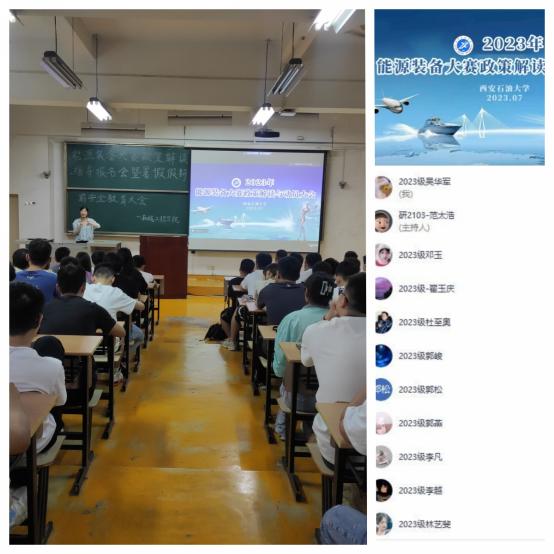 2023年7月3日下午,機(jī)械工程學(xué)院在雁塔校區(qū)東階302教室召開(kāi)2023年研究生能源裝備創(chuàng)新設(shè)計(jì)大賽政策解讀動(dòng)員會(huì)暨暑假假期安全教育大會(huì)。學(xué)院副院長(zhǎng)崔璐、專業(yè)教師鄭杰、研究生輔導(dǎo)員歐紅娟和2021級(jí)、2022級(jí)和2023級(jí)研究生線上線下共計(jì)300余人參加會(huì)議。