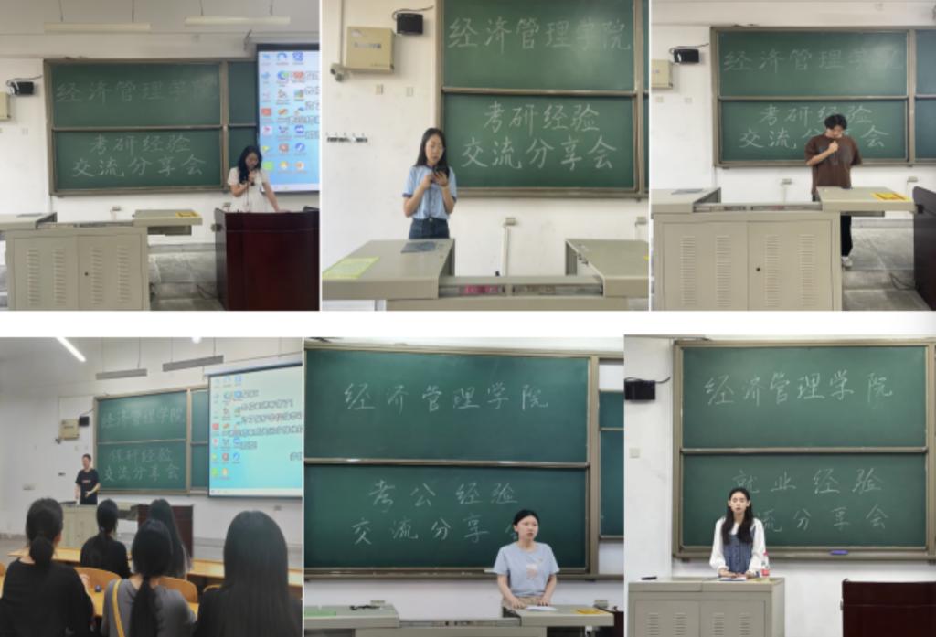 為了引導(dǎo)2024屆畢業(yè)生提前做好就業(yè)準(zhǔn)備,將學(xué)院畢業(yè)生成功的升學(xué)就業(yè)經(jīng)驗傳遞和分享給其他學(xué)生,6月8日,經(jīng)濟(jì)管理學(xué)院在博思樓204、206、208、210教室組織舉辦朋輩學(xué)習(xí)經(jīng)驗交流分享會,2019級各專業(yè)優(yōu)秀畢業(yè)生代表分別從考研、保研、就業(yè)、考公等方面進(jìn)行經(jīng)驗分享。通過此次分享會,一方面鼓勵同學(xué)們夯實專業(yè)基礎(chǔ)知識學(xué)習(xí),另一方面也為同學(xué)們?nèi)绾螠?zhǔn)備升學(xué)就業(yè)提供了更為明確的指導(dǎo)。