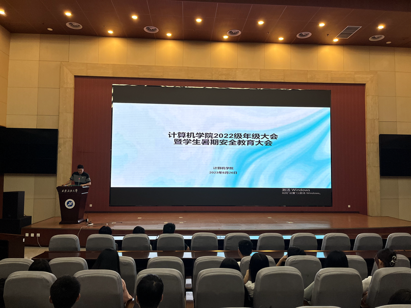 6月26日晚,計(jì)算機(jī)學(xué)院在鄠邑校區(qū)弘石報(bào)告廳召開2022級學(xué)生暑期安全教育大會,2022級輔導(dǎo)員李晨、姚謙及2022級全體學(xué)生參加。