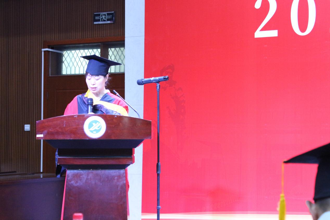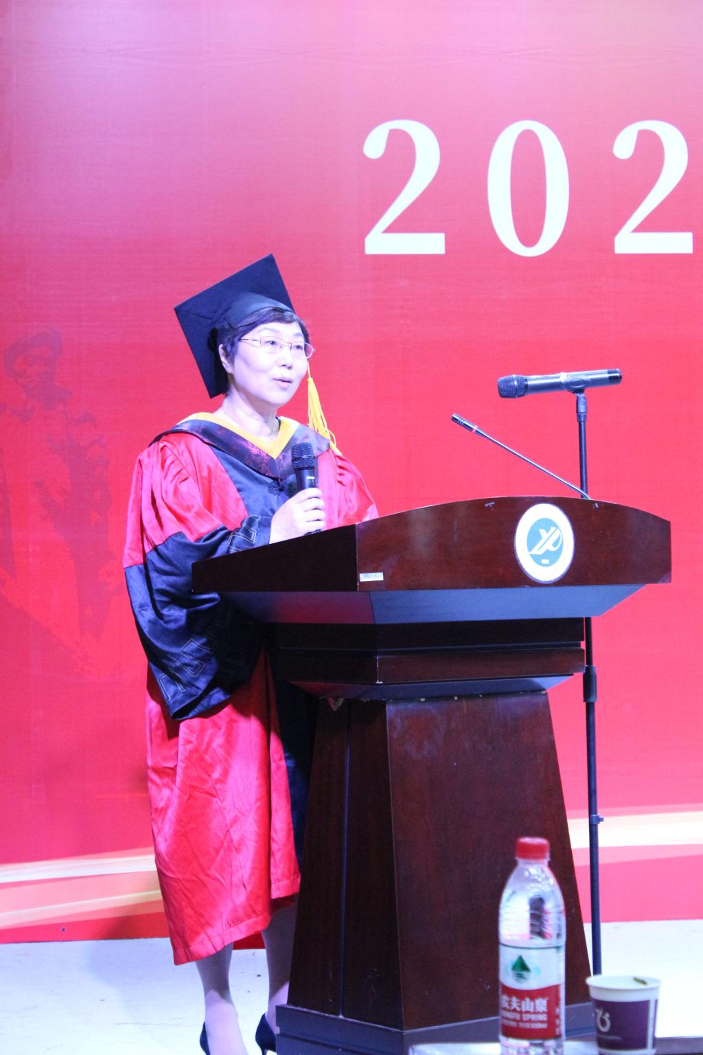 學(xué)院教授委員會主任、院長王君萍致辭,回顧了2023屆畢業(yè)生的四年求學(xué)歲月,表達了對畢業(yè)生的真摯祝福,她寄語即將揚帆啟航的畢業(yè)生,在面對各種艱難險阻時,始終秉承“誠信、融合、盡責、創(chuàng)新”的良好院風,祝愿同學(xué)們將個人成長與國家富強、民族復(fù)興、人民幸福的歷史偉業(yè)緊密相聯(lián)。