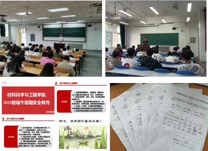 為進(jìn)一步強(qiáng)化同學(xué)們的安全意識(shí),強(qiáng)化同學(xué)的安全意識(shí),構(gòu)建和諧安全的校園環(huán)境,使同學(xué)們度過一個(gè)安全愉快的假期。根據(jù)學(xué)校和學(xué)院學(xué)生工作教育安排部署,61921日,材料科學(xué)與工程學(xué)院各年級(jí)通過線下和線上相結(jié)合的方式開展端午假期安全教育活動(dòng)。