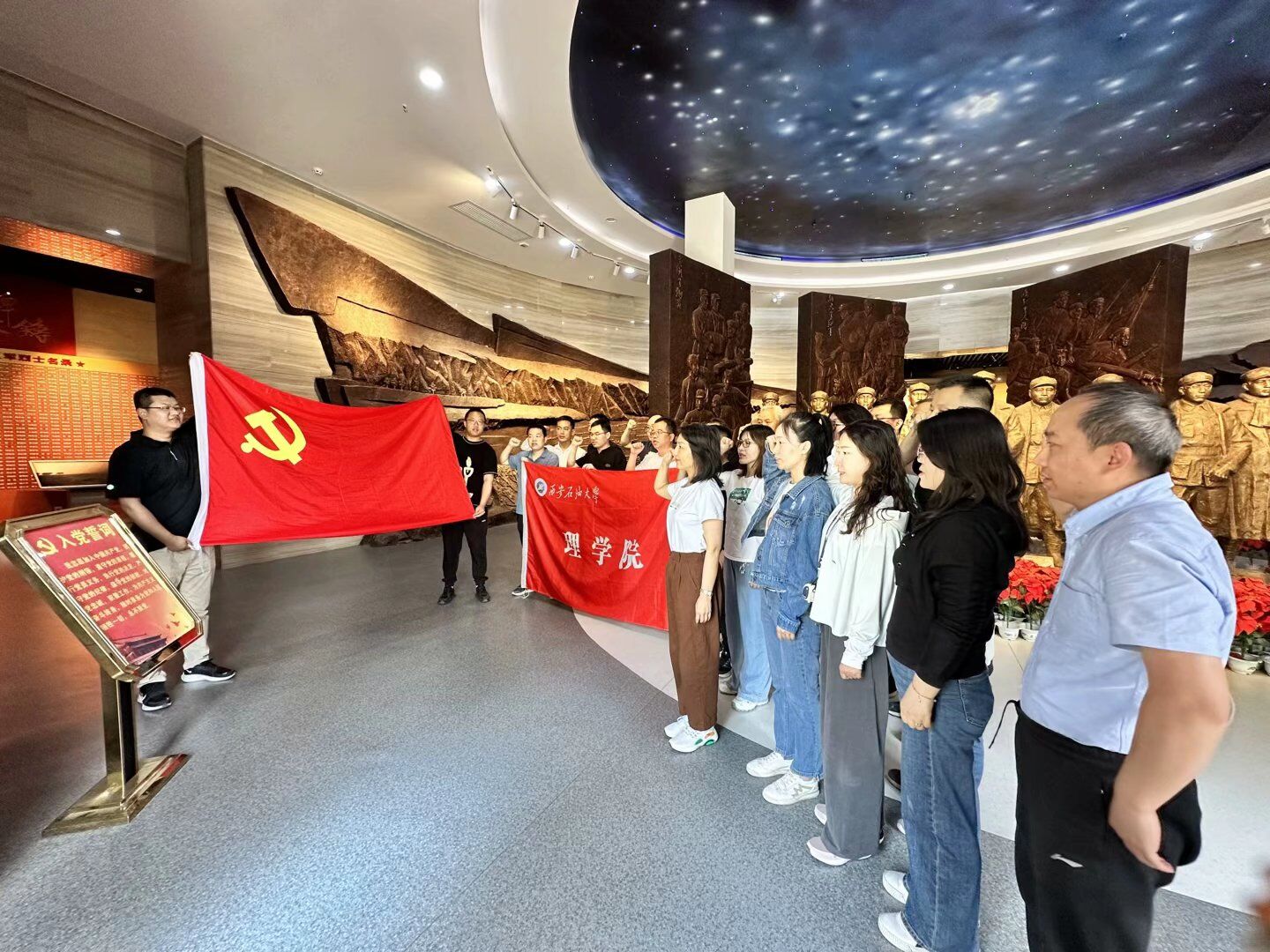 這次研學(xué)之行,是理學(xué)院黨委在主題教育中堅持以習(xí)近平新時代中國特色社會主義思想為指導(dǎo),圍繞學(xué)習(xí)宣傳貫徹黨的二十大精神這條主線開展的一次主題黨日活動。通過這次活動進一步引導(dǎo)廣大黨員深刻領(lǐng)悟習(xí)近平新時代中國特色社會主義思想的核心要義、精神實質(zhì)、豐富內(nèi)涵、實踐要求,進一步了解中國石油工業(yè)的發(fā)展歷程和石油精神,引導(dǎo)廣大黨員立足崗位,銳意進取,奮楫篤行,把埋頭苦干和創(chuàng)新實干結(jié)合起來,發(fā)揮黨員先鋒模范作用,為推進學(xué)校、學(xué)院高質(zhì)量發(fā)展作出新的更大的貢獻!