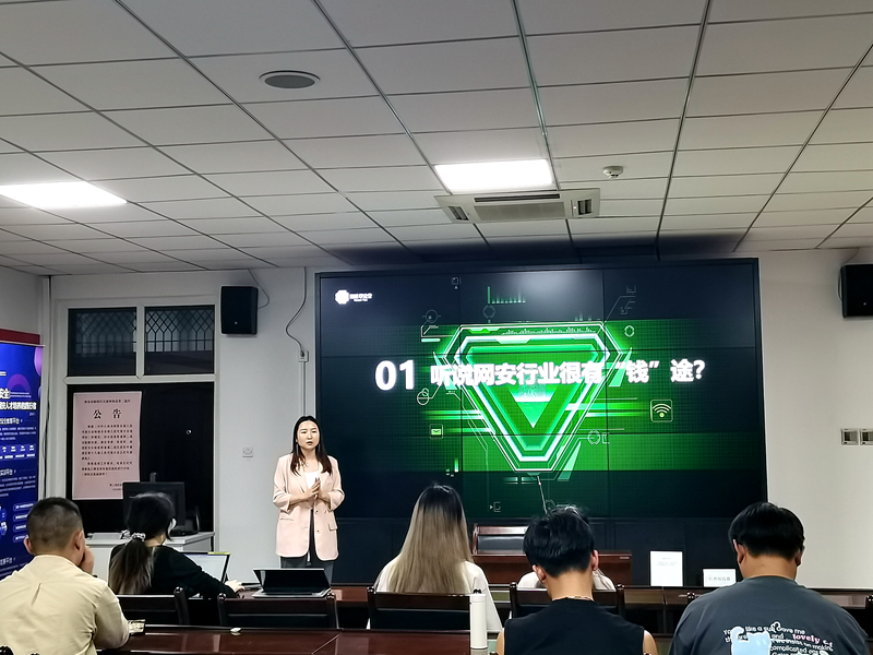 文倩雯和鄧黎基于現(xiàn)階段的招聘環(huán)境,結合自身經(jīng)歷向參會學生介紹了網(wǎng)絡安全工程師的基本從業(yè)條件及發(fā)展前景,幫助參會學生了解企業(yè)用人需求,對標個人能力更好的樹立學習目標,從而做好踏入職場的準備。