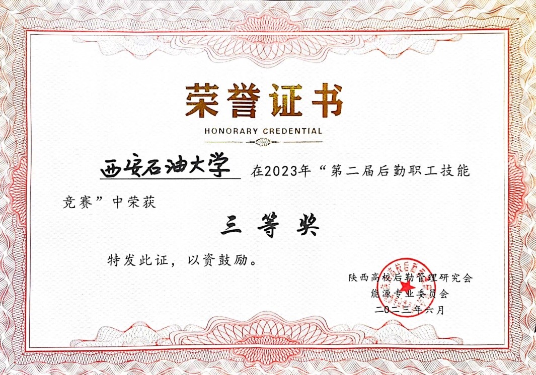 由后勤處選派動(dòng)力維修服務(wù)中心技術(shù)過硬的水工、電工,組成的西安石油大學(xué)代表隊(duì),在6月6日陜西高校第二屆后勤職工技能大賽上勇奪三等獎(jiǎng)。