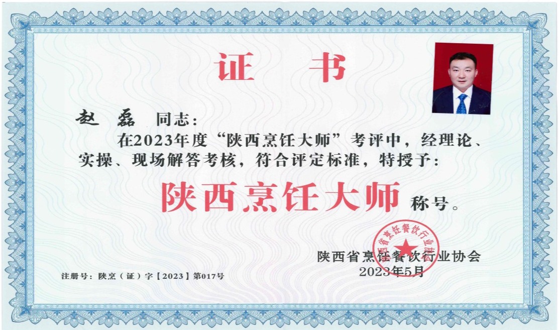 2023年5月14日,陜西省烹飪餐飲行業(yè)協(xié)會(huì)開展了新一屆“陜西烹飪大師”評(píng)定工作,通過理論考試、實(shí)操考核、現(xiàn)場(chǎng)問答、專家評(píng)委評(píng)分等環(huán)節(jié),西安師苑后勤服務(wù)有限責(zé)任公司我校鄠邑校區(qū)項(xiàng)目部經(jīng)理趙磊同志榮獲“陜西烹飪大師”稱號(hào)。