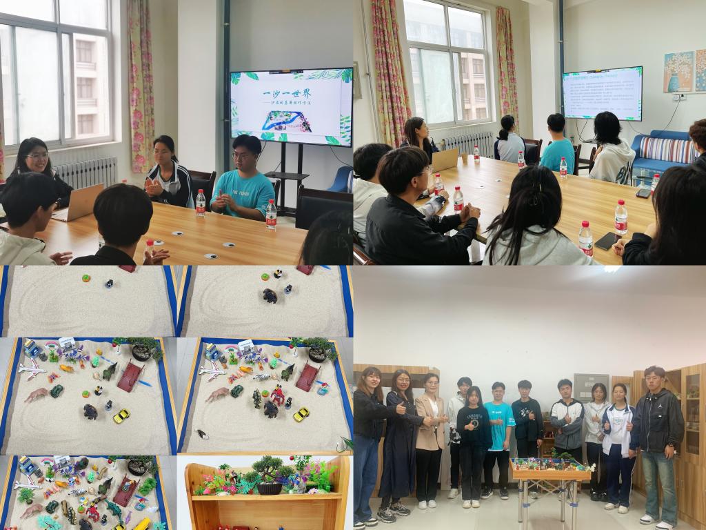 魏老師圍繞沙盤的歷史起源與意義、基本理論、使用方法等方面展開理論知識的培訓(xùn),并指導(dǎo)同學(xué)們展開實踐。在沙盤布置環(huán)節(jié),同學(xué)們井然有序,認(rèn)真選擇,積極構(gòu)思,逐步完成了團(tuán)隊的沙盤作品。隨后,每位同學(xué)都對自己的擺放過程進(jìn)行了分享,訴說內(nèi)心的感受。通過團(tuán)體心理沙盤體驗,同學(xué)們獲得了心靈上的放松,也感受到了被團(tuán)隊成員關(guān)注和支持的溫暖。