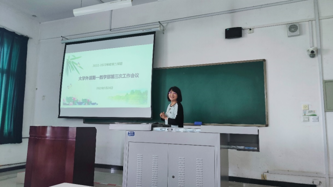 在教學(xué)工作會議環(huán)節(jié),大學(xué)外語第一教學(xué)部主任李雪梅對近期教學(xué)工作進(jìn)行總結(jié)和進(jìn)一步安排,并對新一輪本科教育教學(xué)審核評估進(jìn)行部署安排。會議還進(jìn)行了系部2023年度優(yōu)秀教師和師德先進(jìn)個人評選及推薦工作。