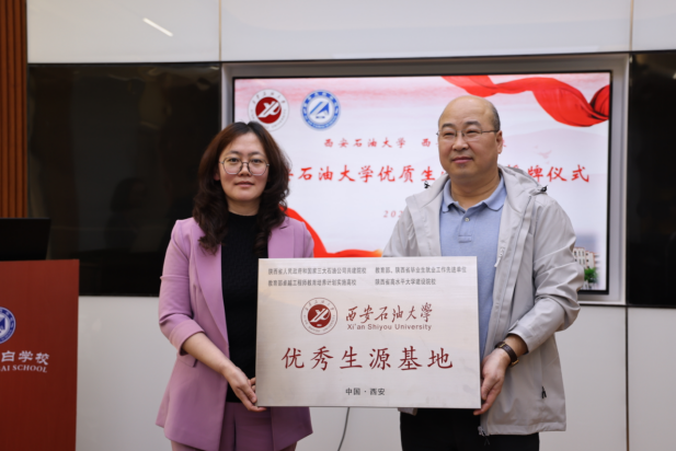 會上,田虹霞代表學校與西安太白學校簽署了《西安石油大學優(yōu)秀生源基地建設協(xié)議》,并授予“優(yōu)秀生源基地”牌匾。