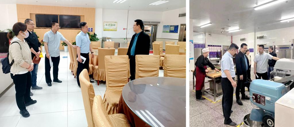 交流結(jié)束后,劉小波一行還實(shí)地考察了寶石花物業(yè)管理有限公司西安交通大學(xué)餐飲及客房服務(wù)項(xiàng)目。