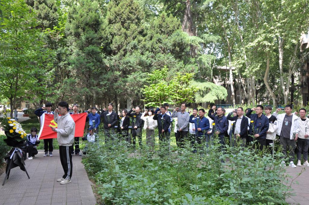 活動(dòng)最后,學(xué)生黨員代表王彤帶領(lǐng)全體師生進(jìn)行“春雨”精神宣誓。全體師生向唐春雨烈士雕像默哀一分鐘并依次敬獻(xiàn)鮮花。