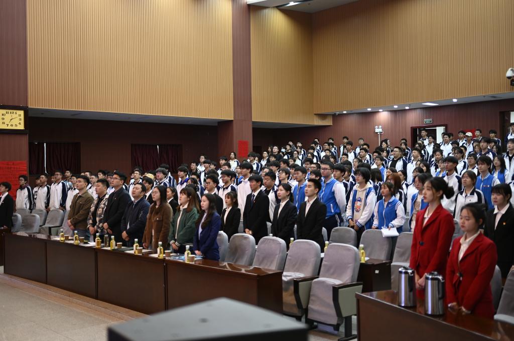 大會(huì)最后,馬小剛老師進(jìn)行總結(jié)講話。講話中,他結(jié)合習(xí)近平總書記提出的“勤學(xué)、修德、明辨、篤實(shí)”八字對(duì)新一屆學(xué)生會(huì)提出四點(diǎn)要求:一要加強(qiáng)學(xué)習(xí),不斷提高自身的學(xué)習(xí)能力和工作水平;二要樂于奉獻(xiàn),提高道德休養(yǎng);三要明辨是非,明確職責(zé);四要腳踏實(shí)地,扎實(shí)干事?!艾F(xiàn)在,青春是用來奮斗的;將來,青春是用來回憶的。”馬老師希望廣大同學(xué)不負(fù)韶華,費(fèi)力拼搏,用實(shí)踐書寫無悔的青春華章。