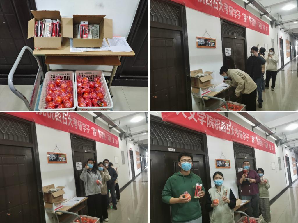慰問保障,保供生活無憂。今年暑假及12月13日,學院多次開展考研學生慰問,為學生送去慰問水果、文具等物品,了解復習進度,聽取學生建議。同時,為了保證設計學生考試畫材順利送到學生手中,學院多次調(diào)查學生困難,聯(lián)系因疫情無法配送的快遞,最終保證考試順利。