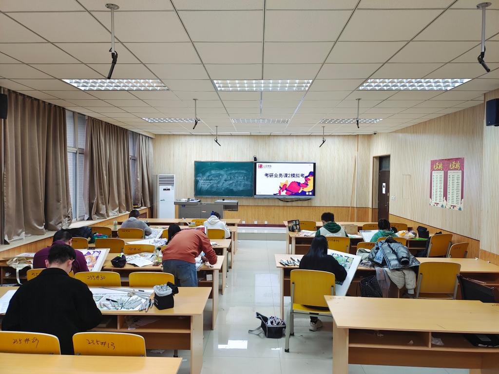 沙場練兵,磨煉實戰(zhàn)技能。為幫助學生熟悉考試流程,提高繪畫考試技巧,11月29日下午2點,學院組織考研學生在人文經(jīng)管樓235教室開展時長3小時的業(yè)務課2模擬考試??荚囍?,學生合理規(guī)劃時間、優(yōu)化設計思路,呈現(xiàn)出多樣的作品??荚嚭螅瑢W院組織專業(yè)老師進行點評指導,幫助學生查漏補缺,完善作品。