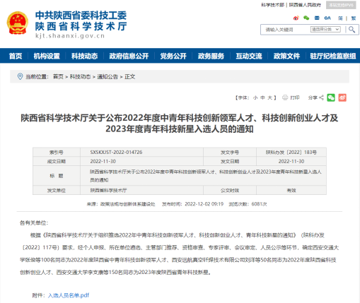 據悉,“陜西省中青年科技創(chuàng)新領軍人才”要求入選者在科技前沿和戰(zhàn)略性新興產業(yè)領域取得高水平創(chuàng)新成果,具有成長為國家級、乃至世界級杰出人才的潛力?!瓣兾魇∏嗄昕萍夹滦恰敝攸c支持具有較高的科研學術水平和創(chuàng)新能力,發(fā)展?jié)摿^大,并被所在單位列為科研工作重點培養(yǎng)對象的青年科研人員。