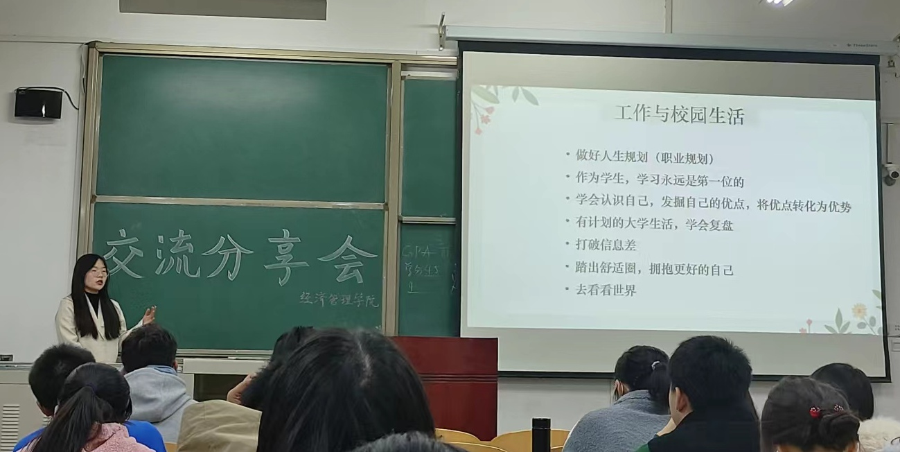 為進一步加強學風建設,培育優(yōu)良學風,營造良好學習氛圍,增強學生學習主動性,強化朋輩幫扶,發(fā)揮榜樣力量,11月18日,經(jīng)濟管理學院在博覽樓7個教室開展學習經(jīng)驗交流會。2020級、2021級17位學習成績優(yōu)異、綜合素質突出的學生向2022級學生作經(jīng)驗分享交流,學院2022級輔導員任仰、王業(yè)林參加會議。