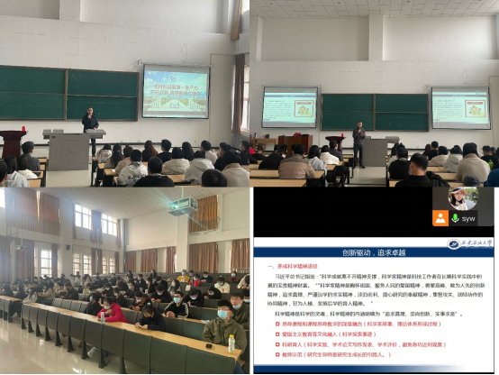 為深入學(xué)習(xí)貫徹黨的二十大精神,切實增強研究生的科研創(chuàng)新意識,11月17日下午16時,研究生工作部在鄠邑校區(qū)機械材料樓115室舉辦了“堅持科技是第一生產(chǎn)力,開拓創(chuàng)新,勇當(dāng)新時代使命”主題講座。本次講座由科技處處長張益教授主講,研究生工作部部長李強主持。本次講座采取線上線下相結(jié)合的方式進(jìn)行,70余名研究生代表在現(xiàn)場參加了講座,其余學(xué)生通過騰訊會議參加。